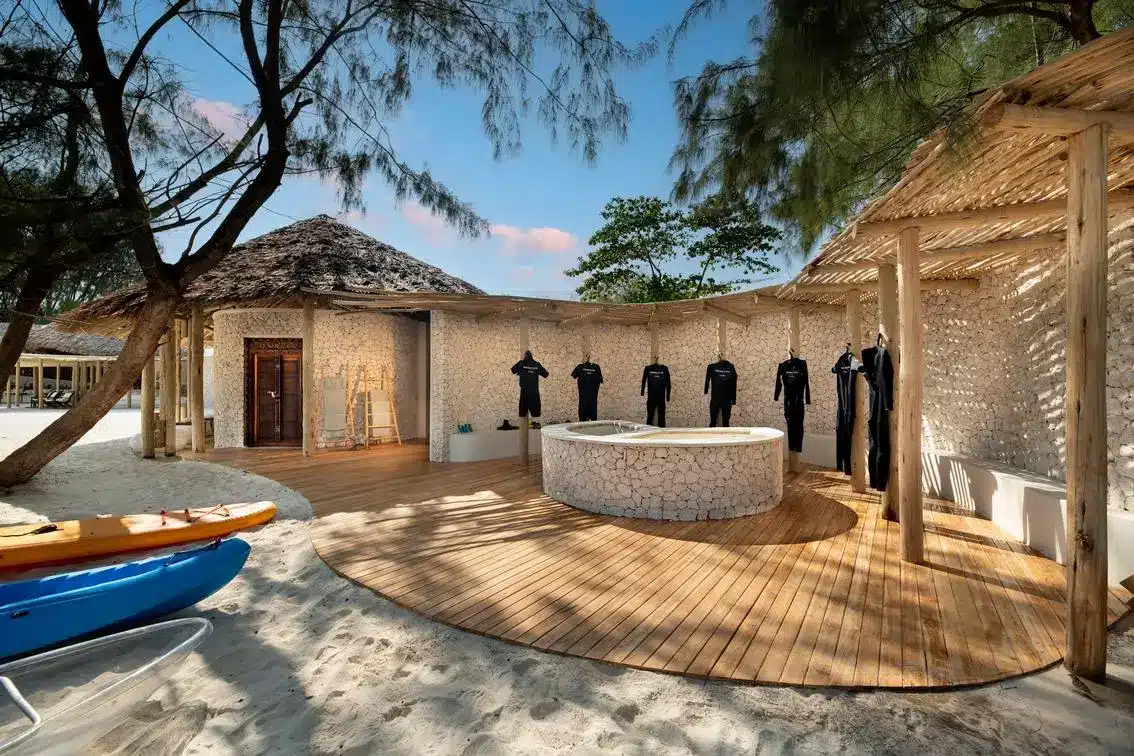 The surrounding coral reefs are part of a marine reserve, offering some of the best snorkeling and diving in Zanzibar, with vibrant coral gardens and abundant marine life.