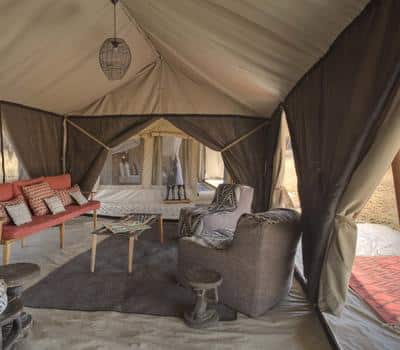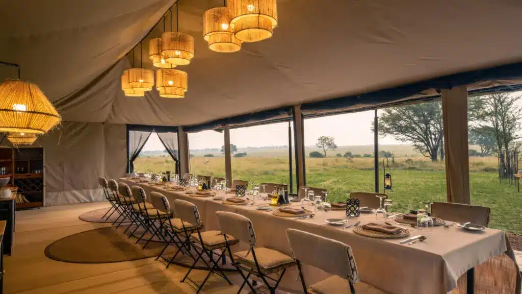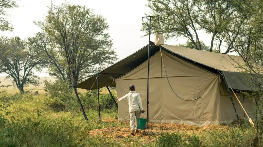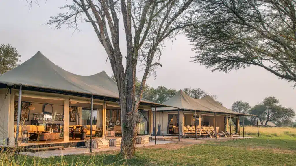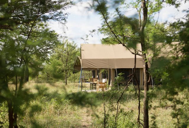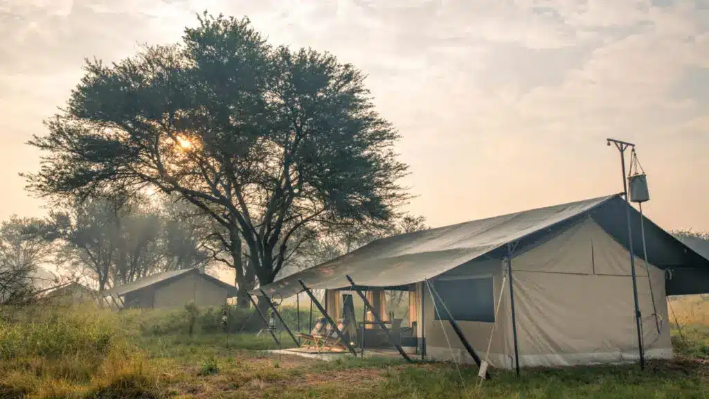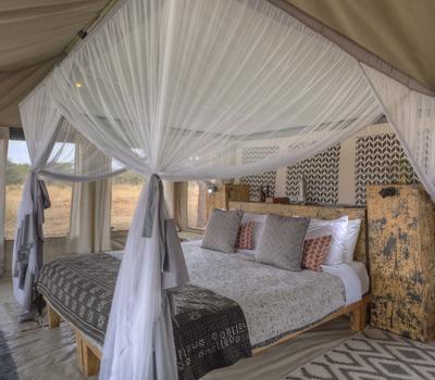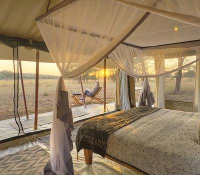 Asilia Ubuntu Migration camp follows herds of wildebeest as they move around the Serengeti from the fertile south grassland that have wildebeest give birth to the north where the crossing takes place. The tents are designed to leave no trace. This is a warm and authentic mobile camp that gives you a traditional Tanzanian hospitality with amazing views of the Serengeti.