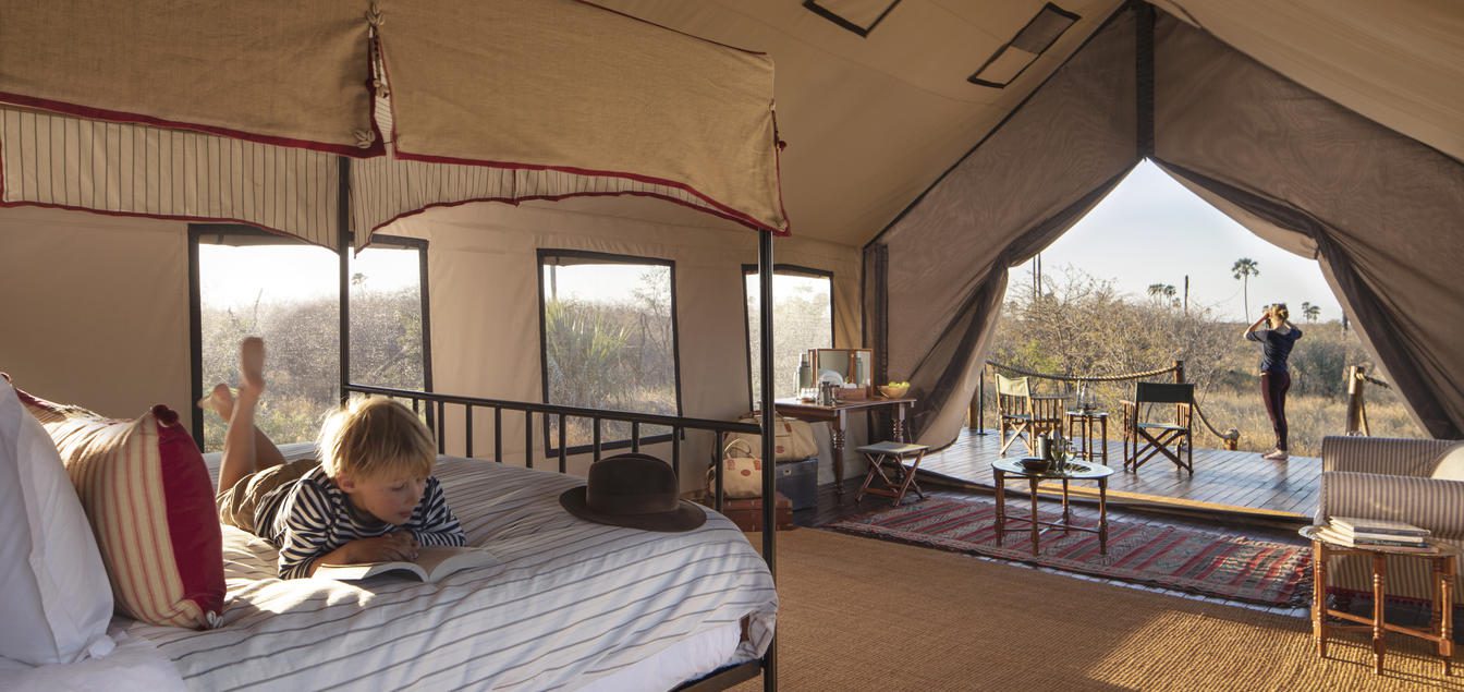 Camp Kalahari is a relaxed yet stylish safari camp located on the edge of Botswana’s Makgadikgadi Salt Pans, offering a comfortable base for exploring one of the most unique desert ecosystems in Africa. Part of the trio of sister properties that include Jack’s Camp and San Camp, Camp Kalahari is more family friendly and casual, making it an ideal choice for travelers who want both adventure and comfort without the ultra-luxury price tag. The camp’s design captures the essence of a traditional safari with plenty of character, using canvas, wood, and locally inspired décor to blend into its wild surroundings. Guests here can enjoy both the fascinating culture of the Kalahari and the remarkable seasonal wildlife movements that sweep through the region.