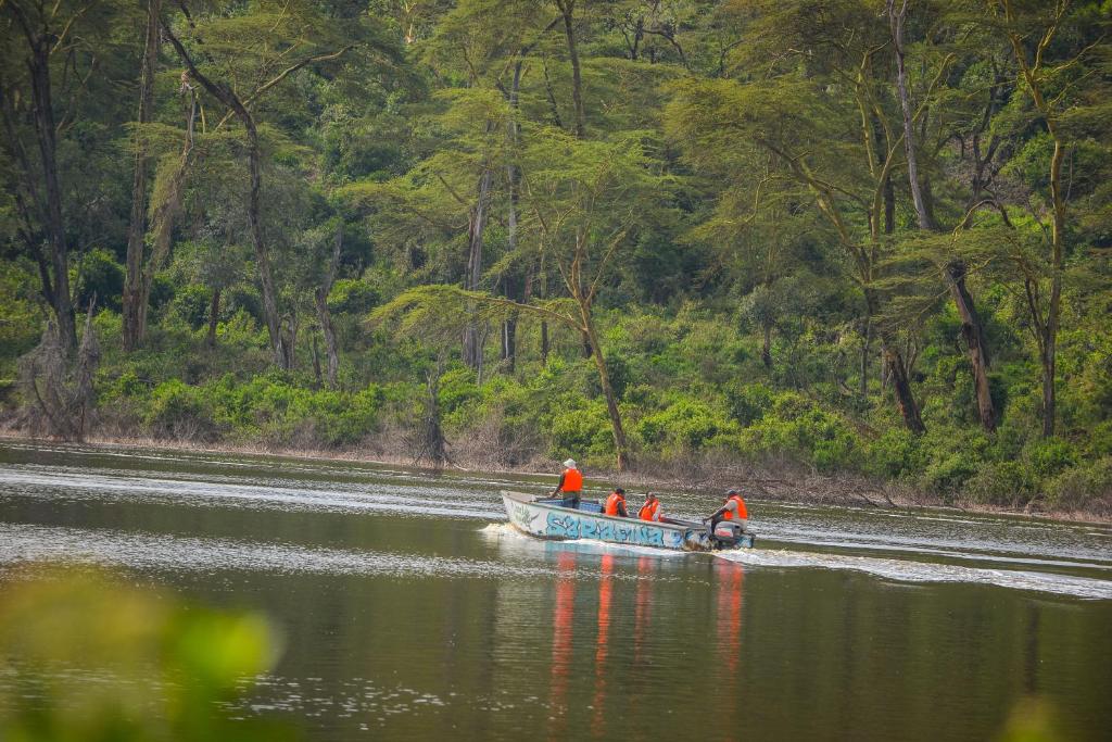 The spacious eleven tents sit in secluded clearings in the lakeside forest with sweeping views over the flamingo-lined waters. Each tent has a giant four-poster bed, the finest furniture, and an ensuite bathroom with a piping-hot shower. The new ‘honeymoon tent’ or the “Clouds” offers a sumptuous bedroom and a deep sunken double jacuzzi overlooking the lake through a giant stained-glass window.