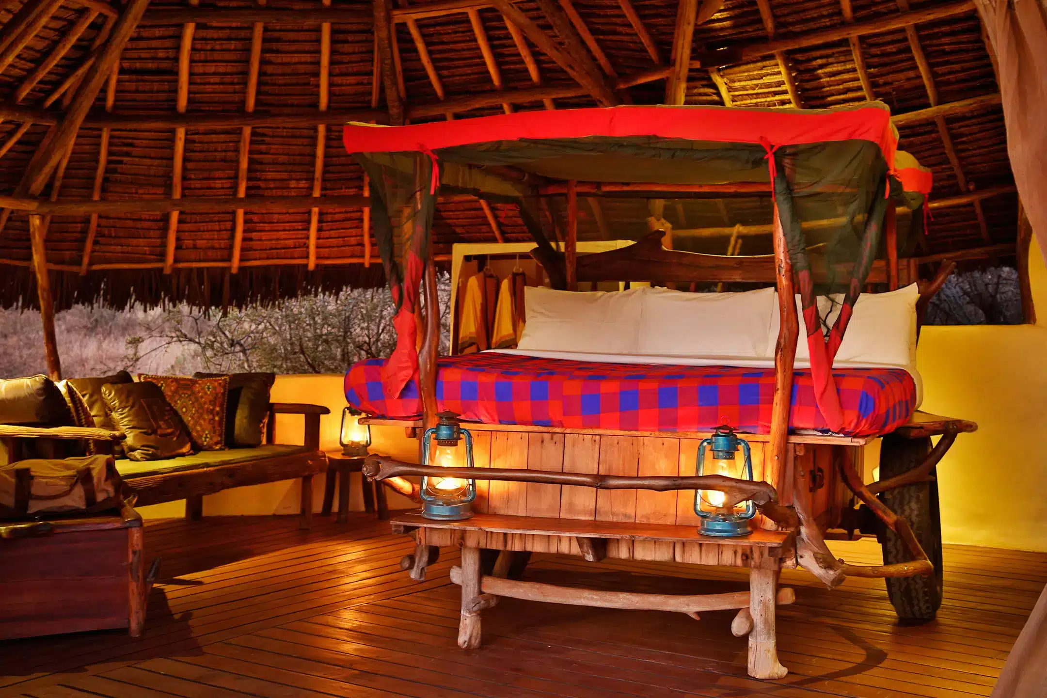 Elewana Loisaba Star Beds features 4 poster wooden beds that sit on raised wooden platforms. A team of traditional Samburu and Laikipiak Maasai warriors welcome you once you get to the camp.