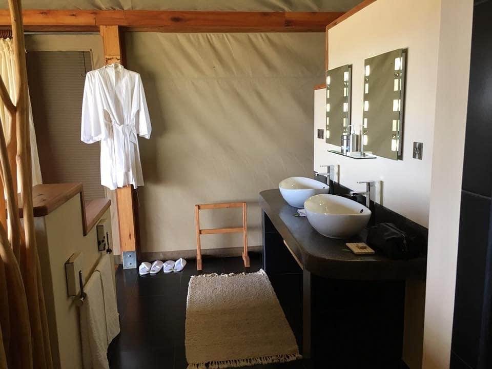 The camp has 12 incredibly spacious ensuite tents that offer breathtaking views that can be enjoyed from the tents verandah. Their bathroom has a double basin vanity, large shower and an enclosed flush toilet.