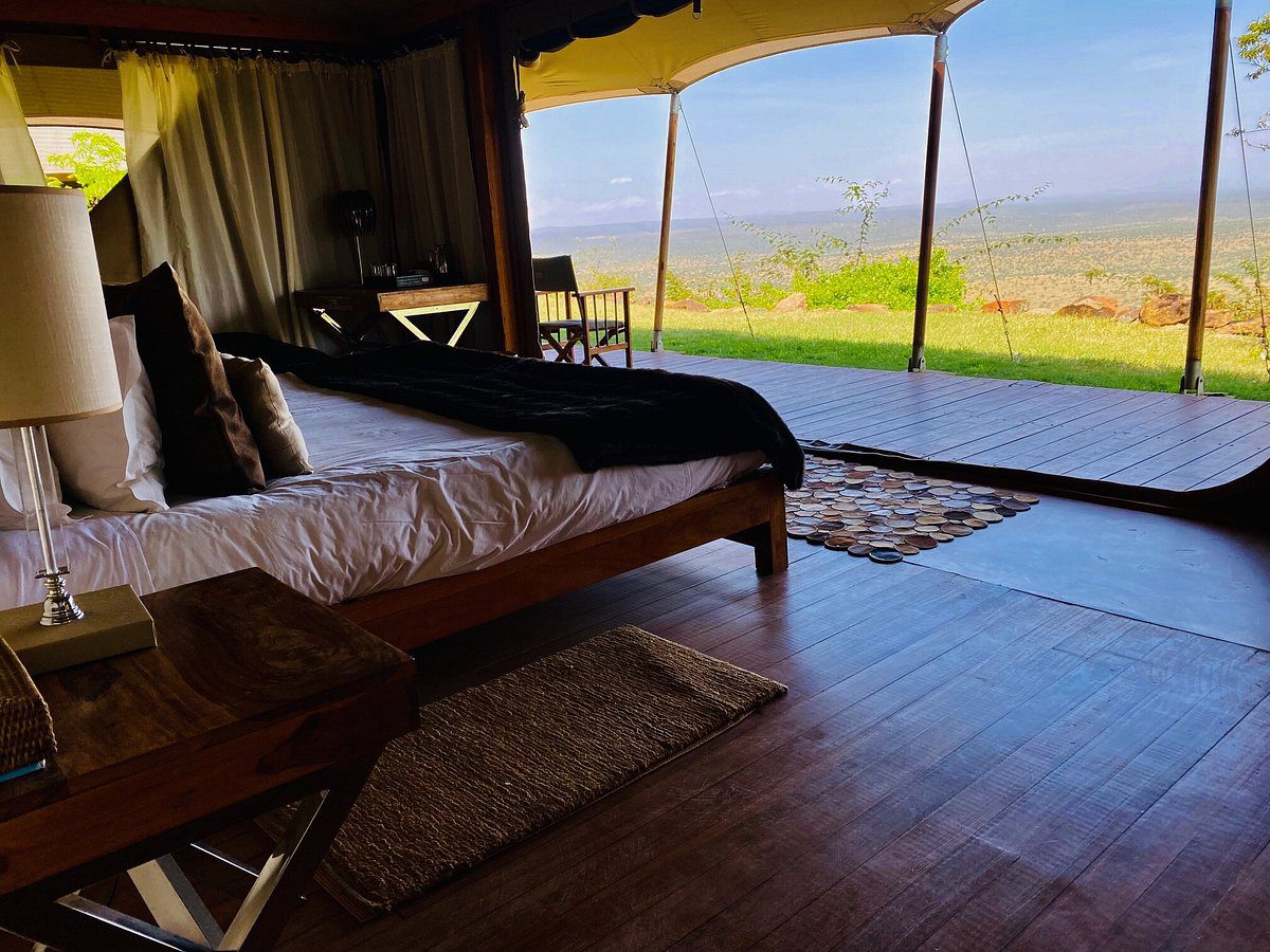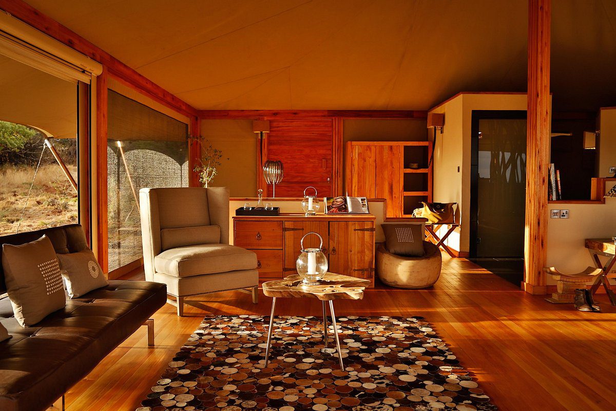 The tents are custom designed with large floor to ceiling windows and doors, stylish modern furnitures, wide verandahs and polished wooden floors. Each tent offers an expansive view over the Laikipia plains.
