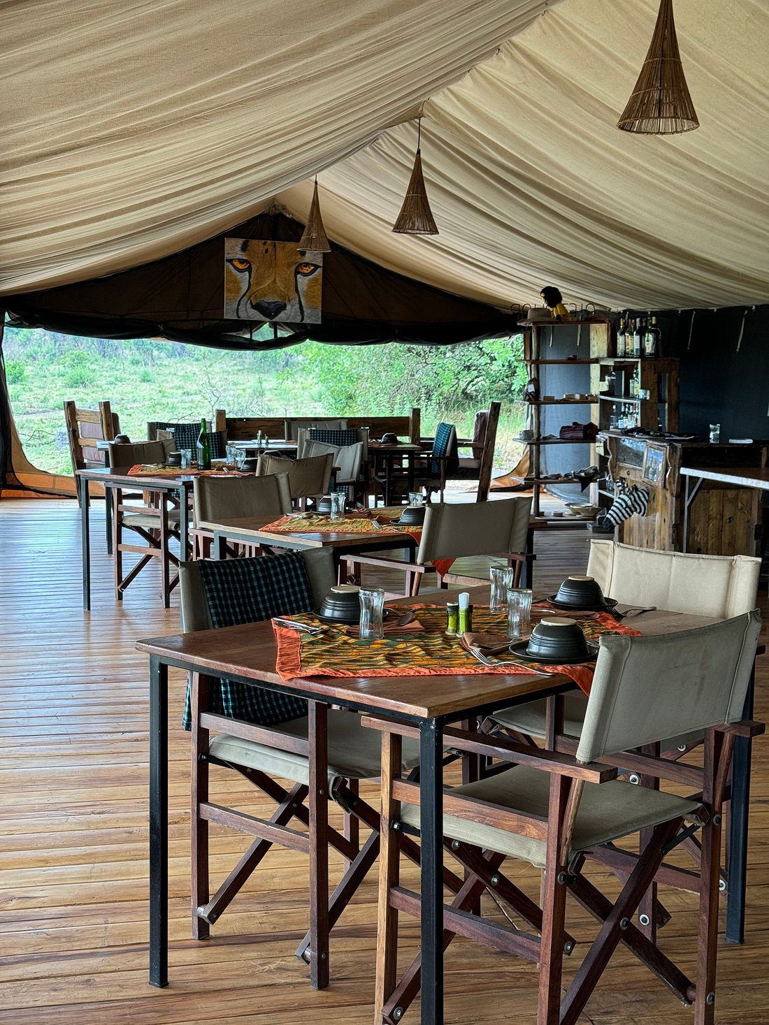 There’s a central dining tent serves freshly prepared meals, featuring a mix of local and international cuisine. Meals are often sourced from organic, locally-grown ingredients. A comfortable lounge and bar area provides a perfect space for unwinding after a day of adventure, with panoramic views of the Mara wilderness. There’s also a small library with books on African wildlife, history, and culture is available for those seeking quiet moments of reflection. The camp operates with sustainability in mind, using solar power for lighting, heating, and charging devices, as well as a minimal plastic policy.