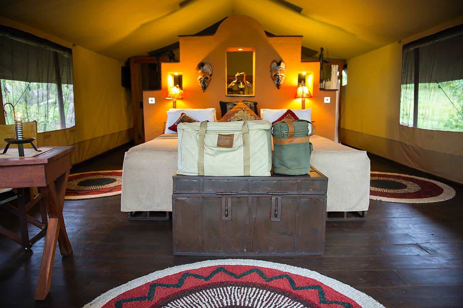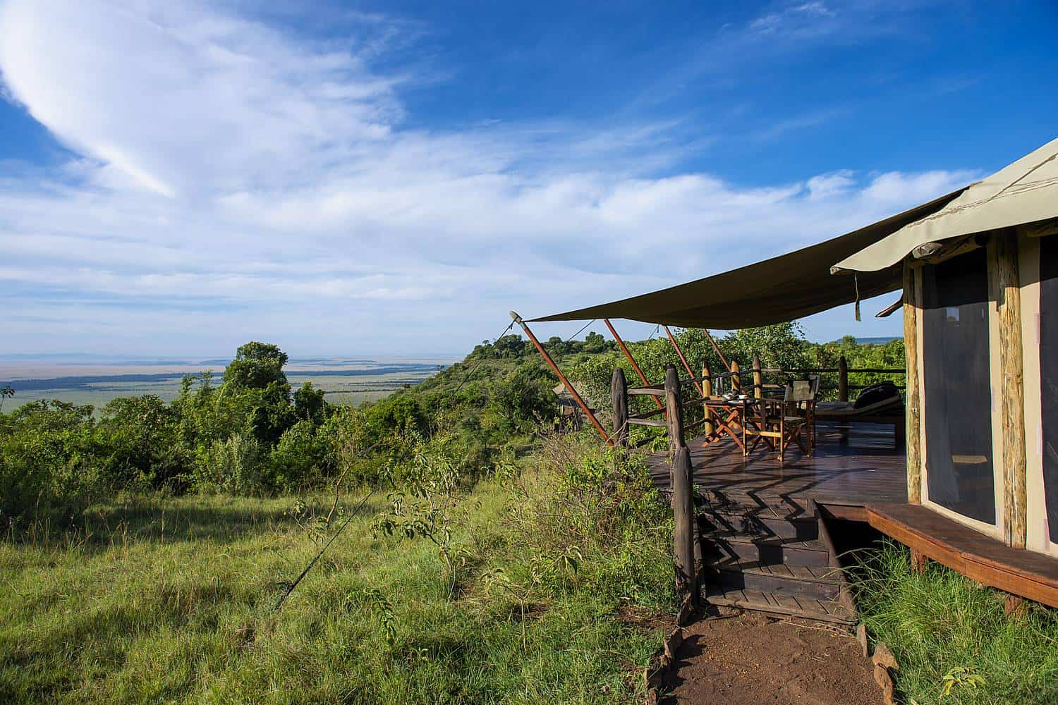 The camp consists of 15 tents, including three luxurious tents. Each tent has its own veranda and en-suite bathroom. All tents, Deluxe and Classic, benefit from a fabulous view over the Mara plain and Mara River. Double or twin rooms are available and two of the Classic tents are adjacent and share the same path way. They are ideal for families with children in their own tent. Lighting is solar-powered, the tent floors are wooden and the bathrooms are fitted with flush toilets and a safari shower with hot water.