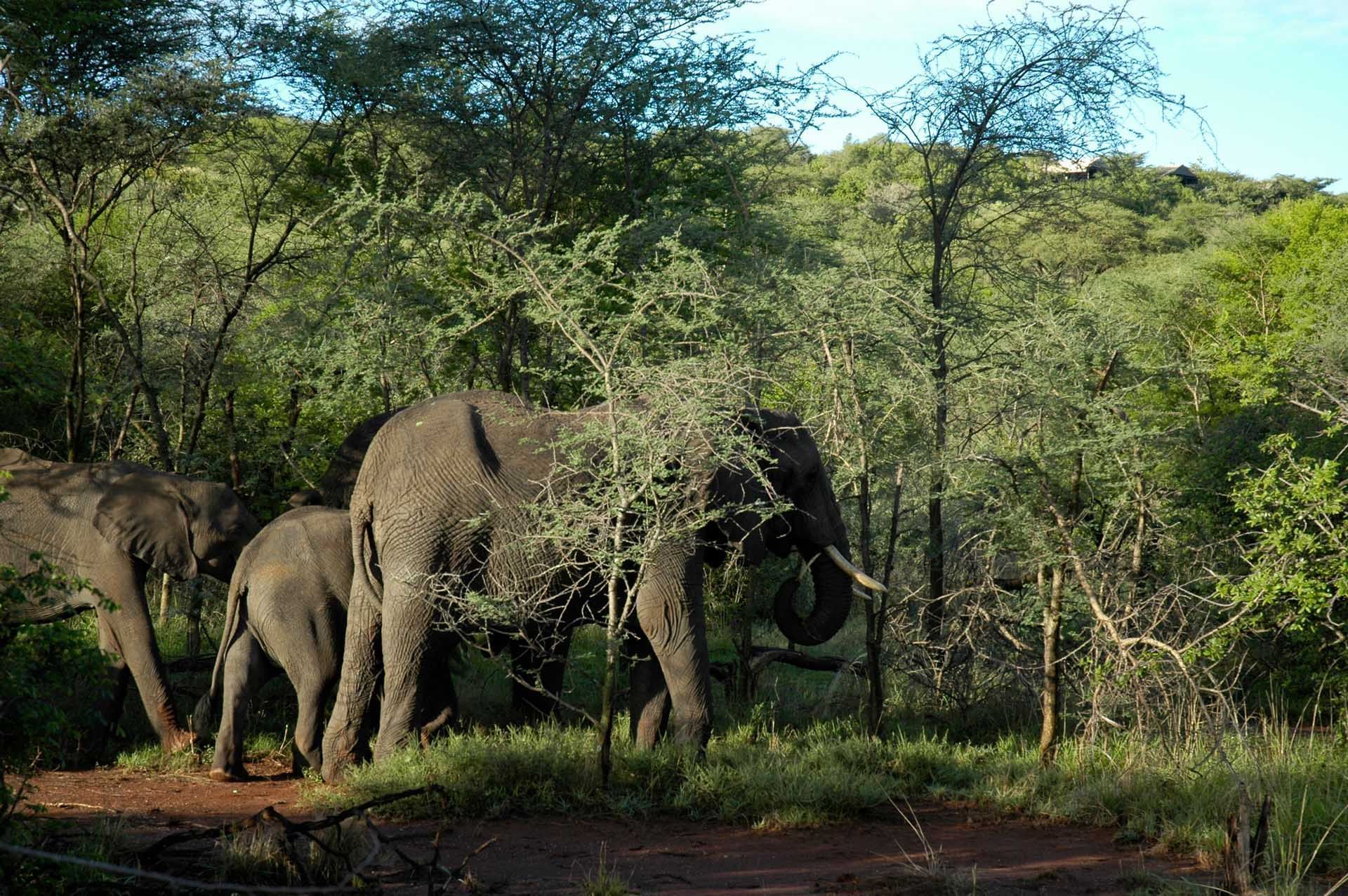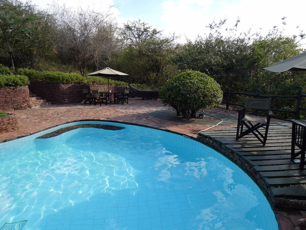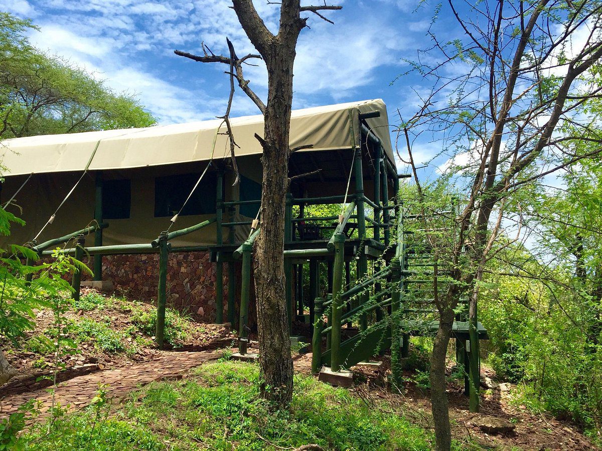 Perched on a series of elevated platforms and walkways, Four Seasons Lodge sits next to an animal watering hole, where