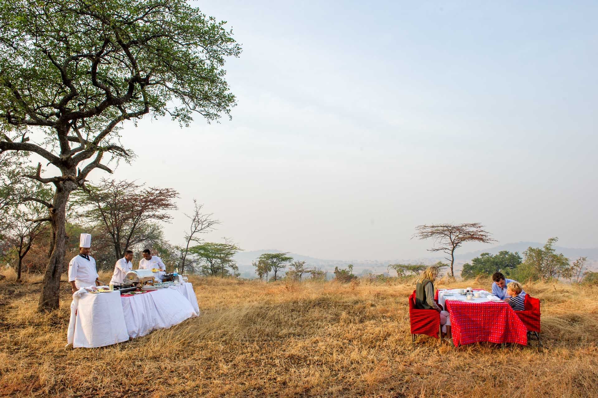 For a unique perspective, guests can book a hot air balloon safari, gliding over the Serengeti at sunrise for stunning aerial views of the wildlife and landscapes.