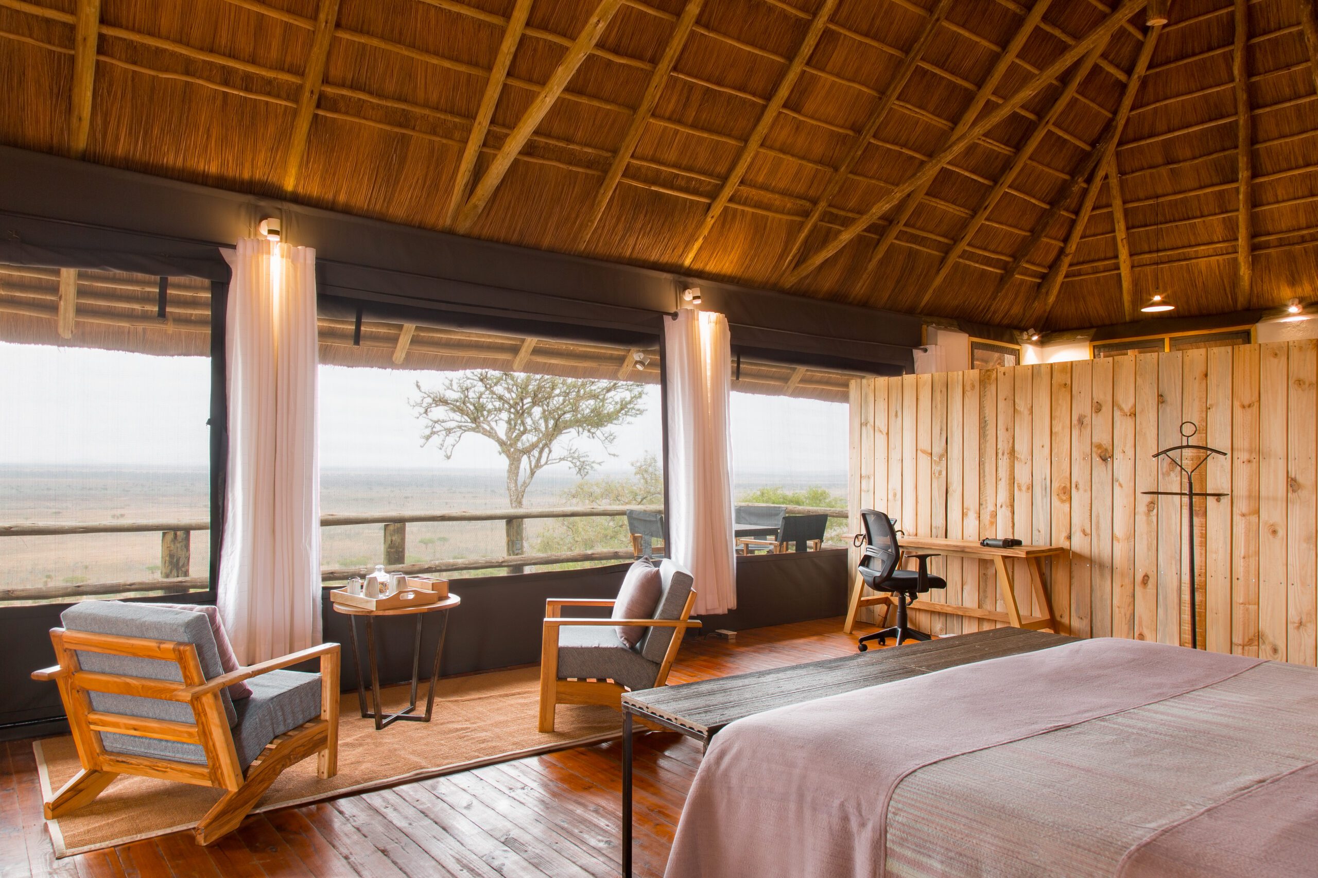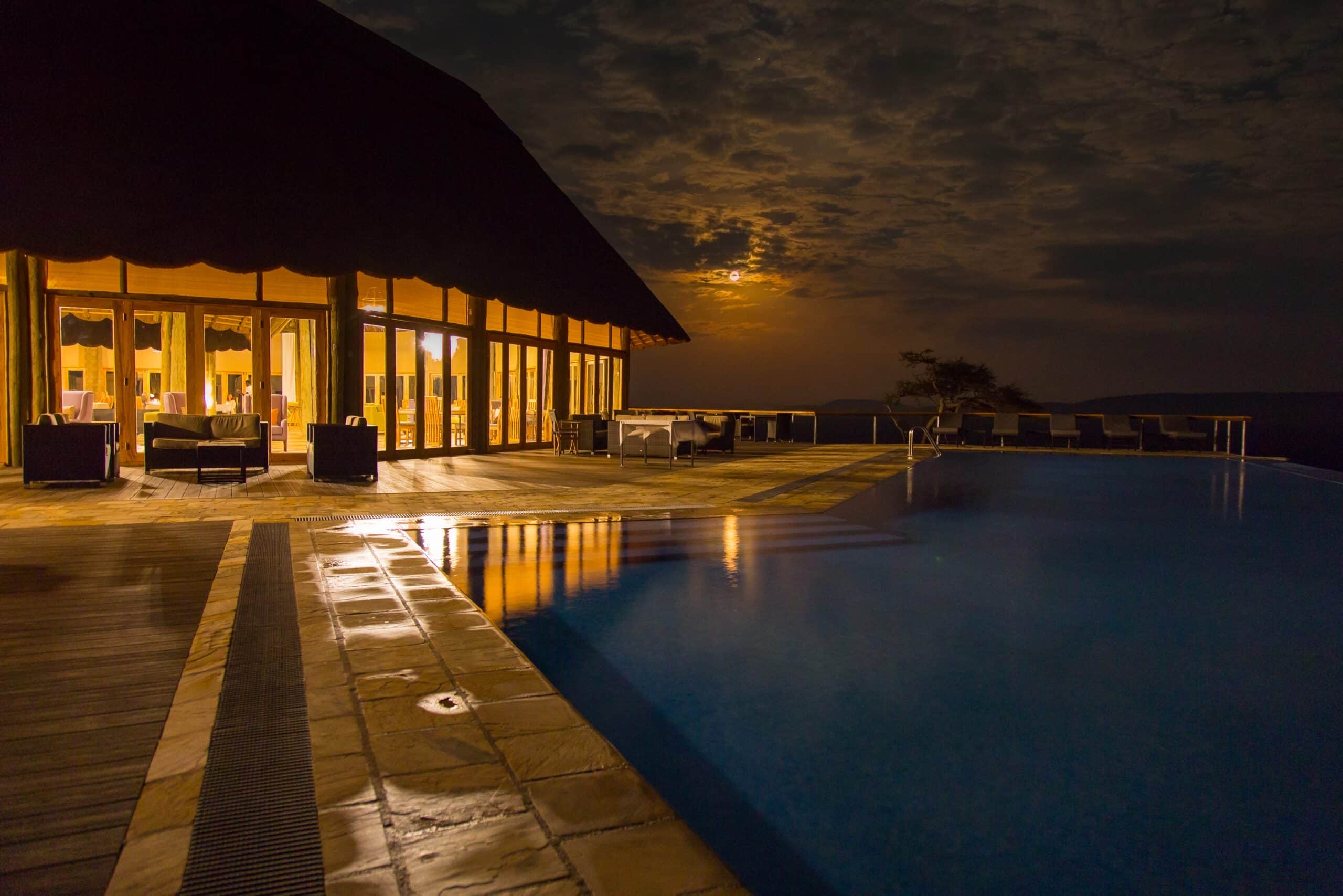 The lodge has a stunning infinity pool overlooking the Serengeti. A central lounge and dining area, serving gourmet meals inspired by local and international cuisine. A bar and outdoor terrace, perfect for enjoying sundowners and a firepit for evening relaxation and stargazing.