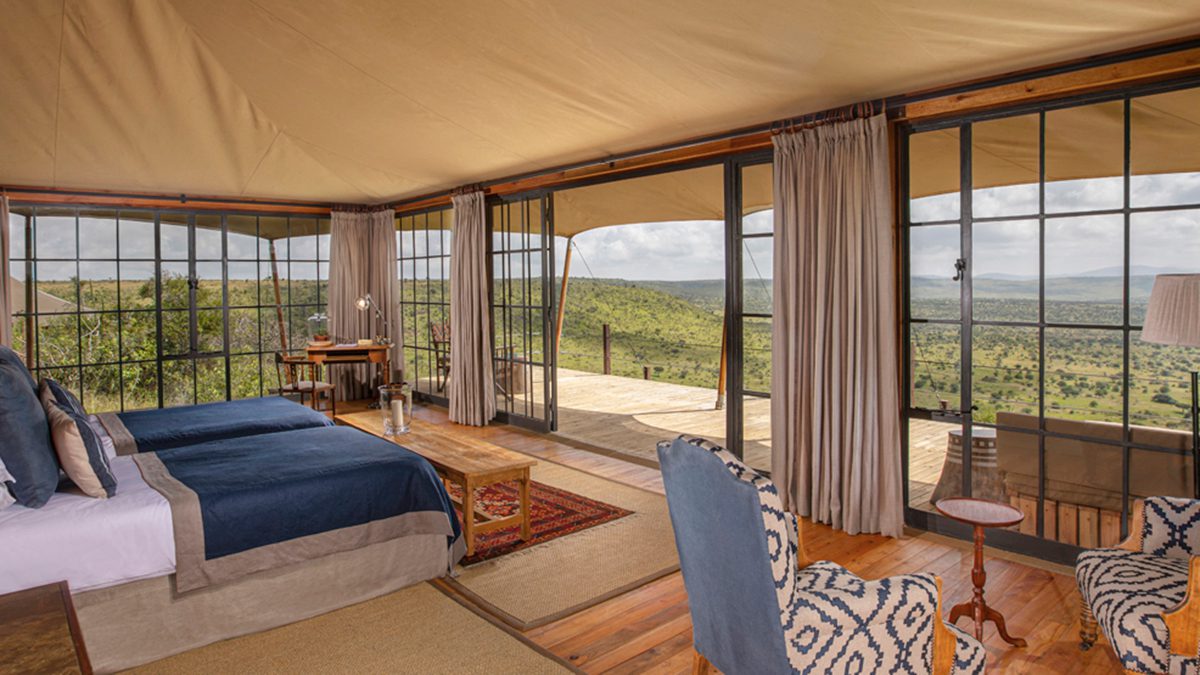 Loisaba Lodo Springs offers just eight spacious tented rooms, ensuring an exclusive and private experience. Each room is positioned to maximize breathtaking views of the Laikipia plains and Mount Kenya in the distance. The rooms are beautifully designed with contemporary safari style interiors, featuring high ceilings, wooden floors, and floor to ceiling glass doors that open onto private decks. Each suite includes a personal butler for personalized service. Elegant en-suite bathrooms with luxurious rainfall showers. Indoor and outdoor lounging spaces for relaxation. Solar powered lighting and hot water systems. The rooms are spaced apart to offer complete privacy, making the lodge ideal for honeymooners, couples, and discerning travelers seeking solitude in the wild.