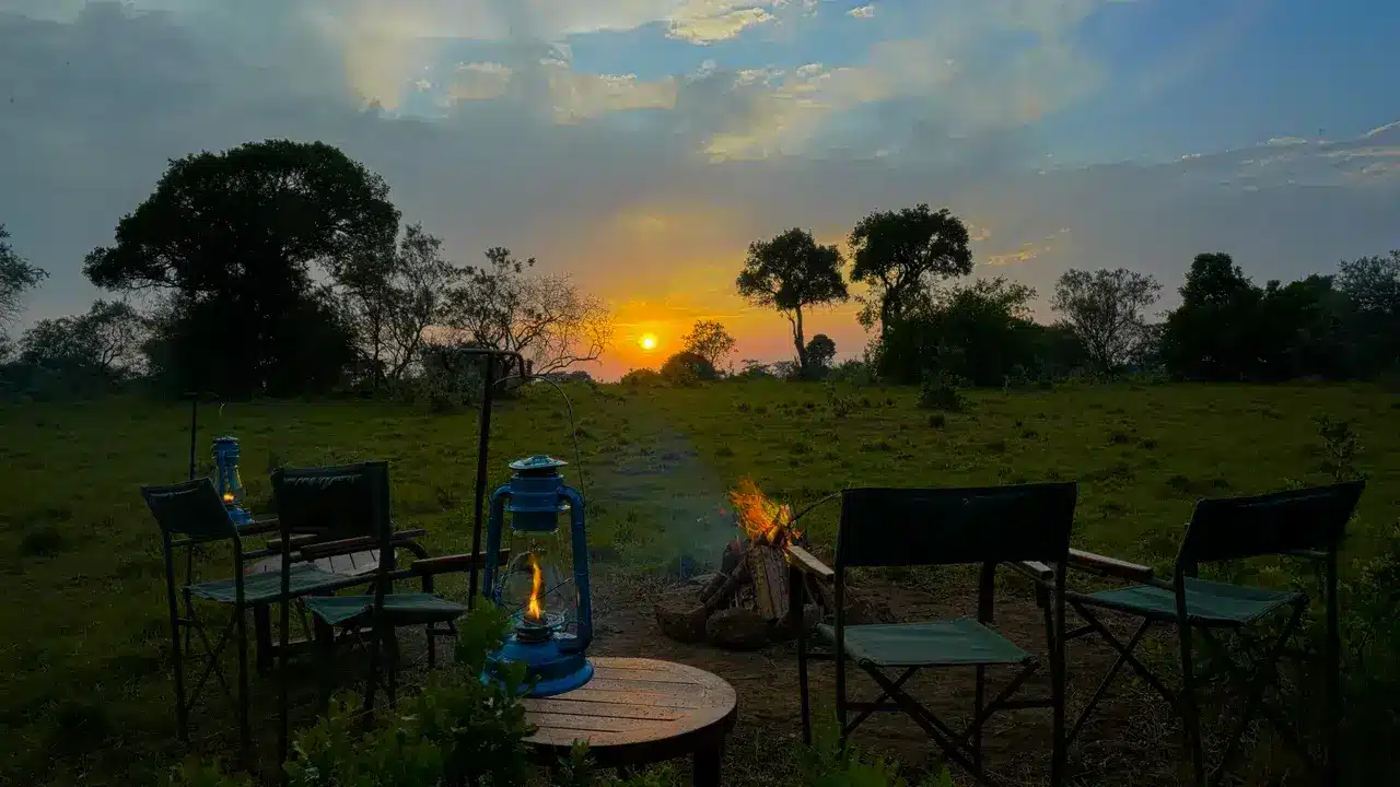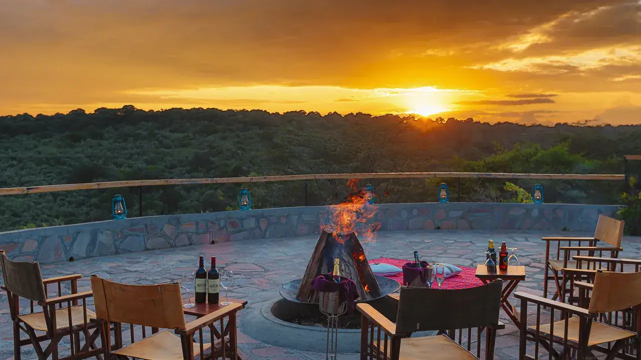 The camp’s communal areas further enhance the safari experience. The open air dining area allows guests to savor gourmet meals while taking in stunning views of the landscape. A cozy lounge and bar offer a comfortable setting to unwind with a selection of beverages, while the open deck design ensures uninterrupted wildlife viewing. In the evenings, guests can gather around the bonfire area, sharing stories beneath the vast, starlit African sky.