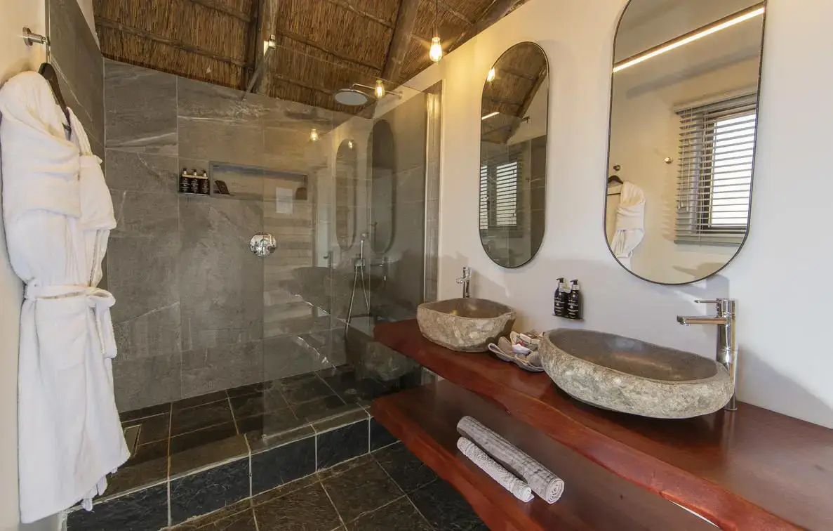 The lodge features 11 thatched chalets, each individually decorated and positioned to take full advantage of the sweeping river and floodplain views. Chalets are spacious, with en-suite bathrooms, private verandas, and a mix of double or twin bed configurations. Décor combines natural materials and earthy tones for an authentic safari feel. The main lodge building houses a dining area, comfortable lounge, bar, and viewing decks. A swimming pool overlooks the river, and there is also a library, curio shop, and small gym. Meals are freshly prepared using locally sourced ingredients and often served al fresco to maximize the views.
