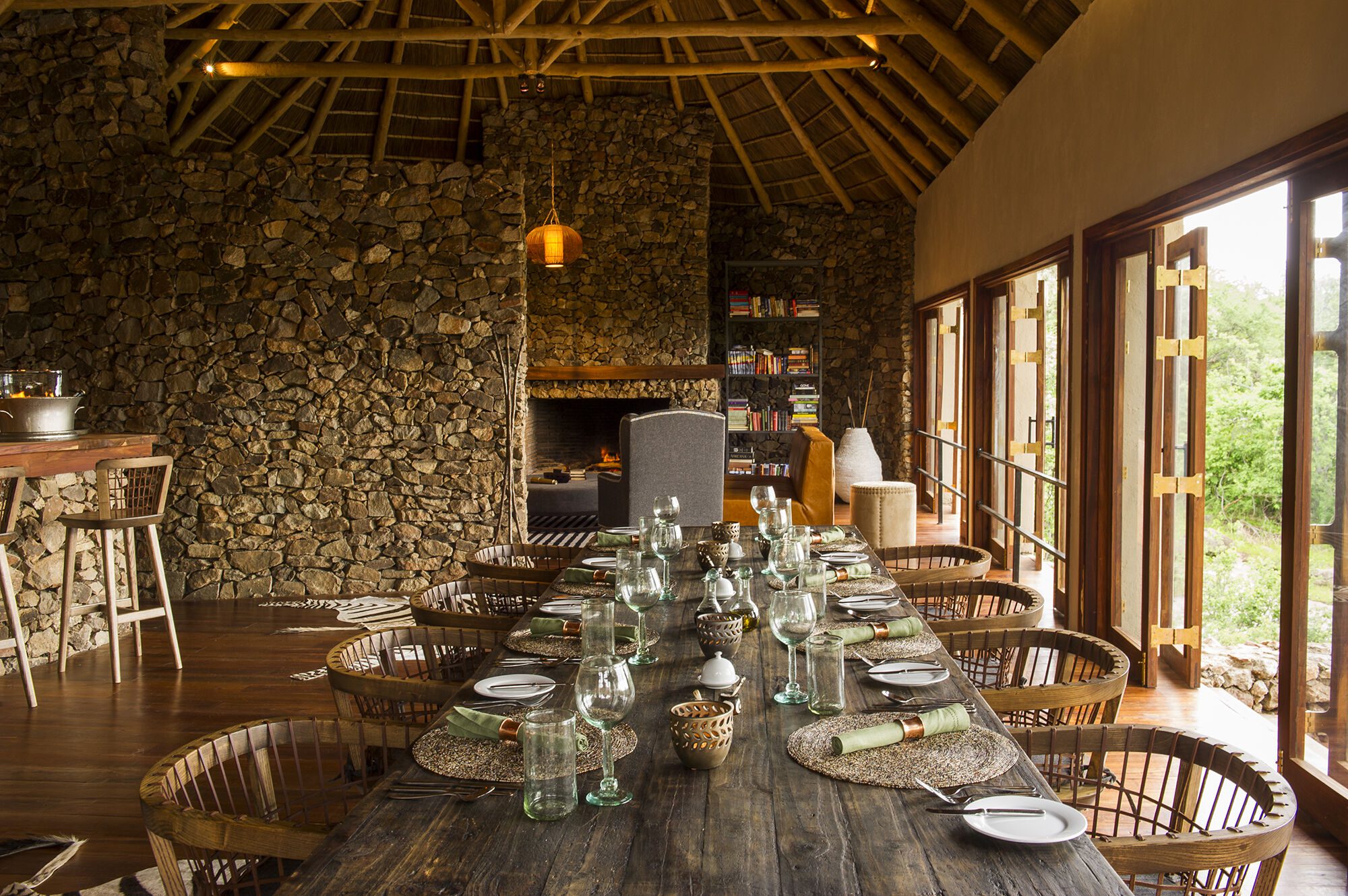 The main lodge area features a comfortable lounge, a bar, and a dining area where guests can enjoy gourmet meals prepared with locally sourced ingredients.
