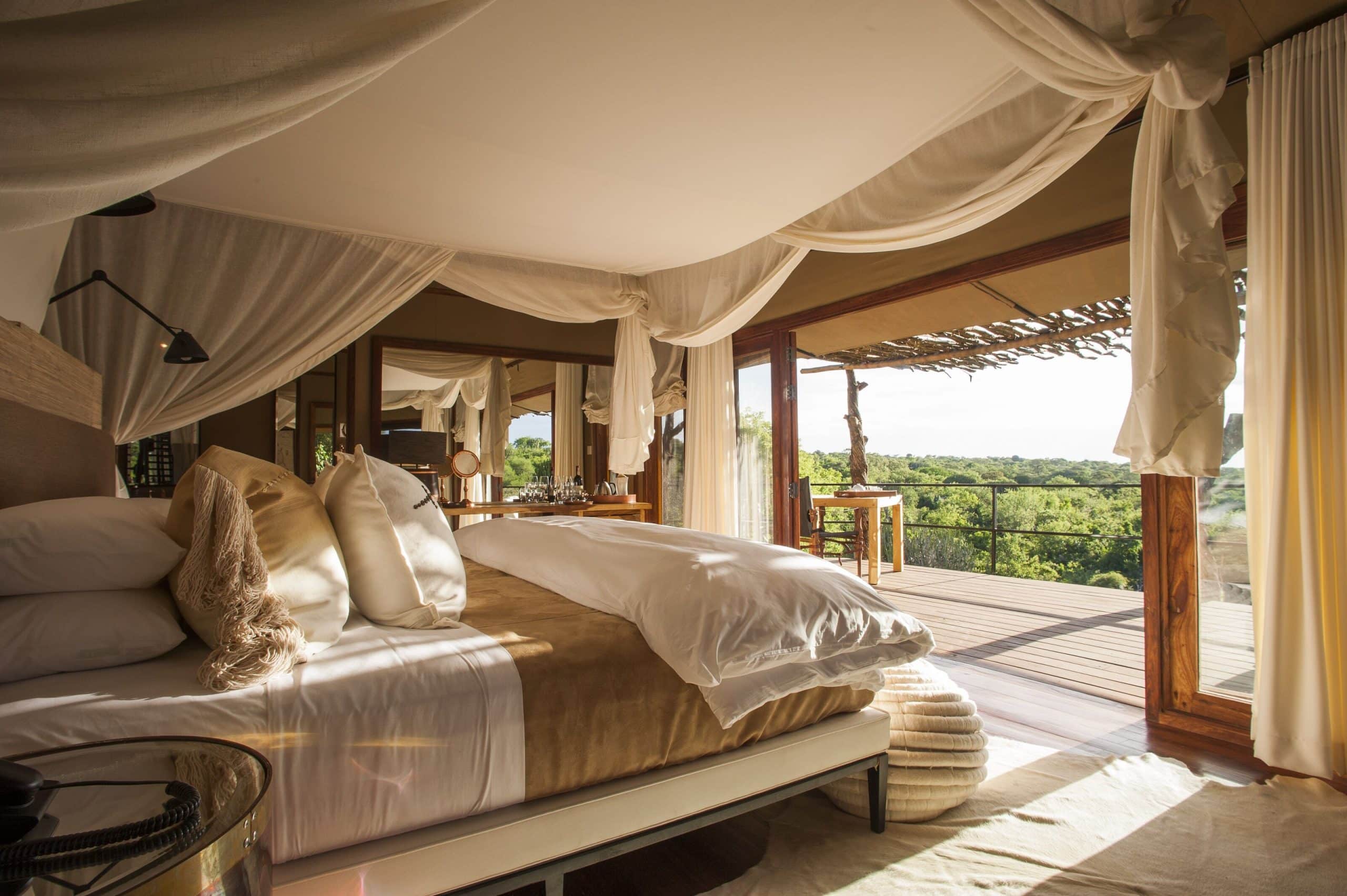 Mwiba Lodge features luxurious, tented suites that provide the perfect balance of comfort and wilderness. The lodge consists of 8 spacious tented suites, each with a large, private deck that overlooks the vast Serengeti plains. Each suite is designed to maximize the breathtaking views while providing ultimate comfort, with large beds, en-suite bathrooms, and a cozy lounge area. The tents are equipped with modern amenities such as flush toilets, hot water showers, and electricity, ensuring that guests can enjoy a luxurious stay while being immersed in nature.