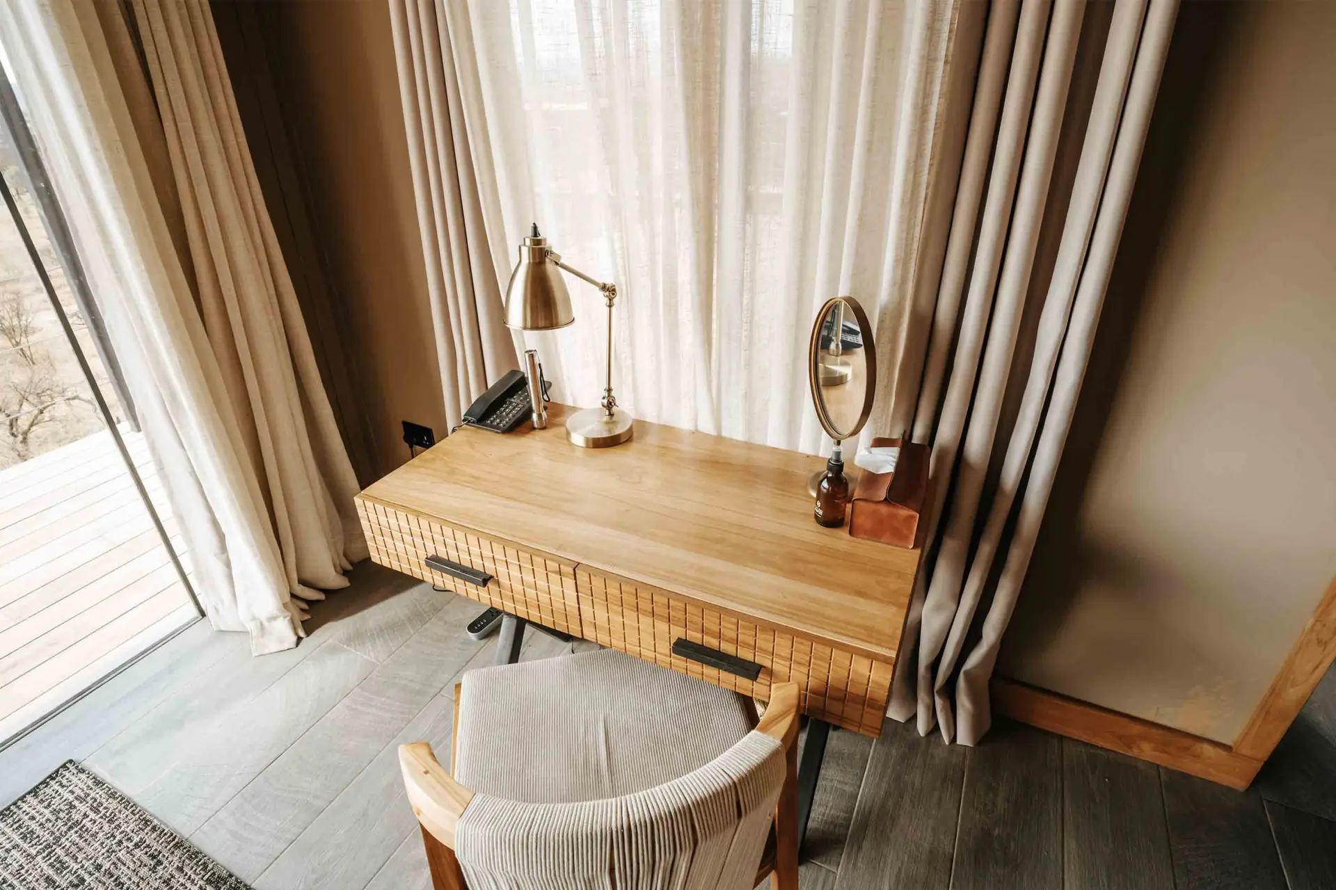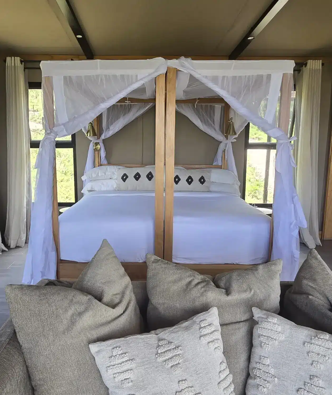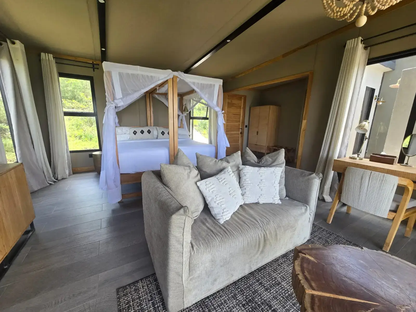 The camp features luxurious canvas tents, elegantly furnished with king-size beds, en-suite bathrooms, outdoor showers, and private verandas offering stunning views of the Serengeti plains. The interiors blend traditional safari style with modern touches, creating a comfortable yet immersive experience.