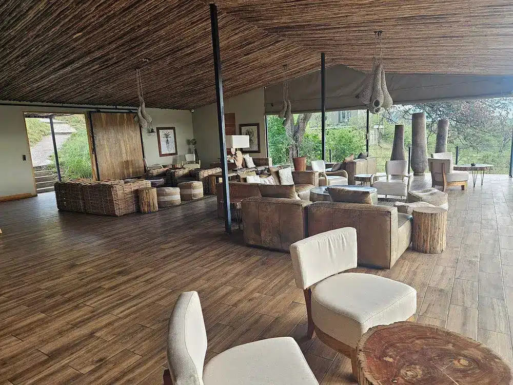 The main lounge and dining areas provide a relaxed setting with comfortable seating, a well-stocked bar, and an open-air fireplace, perfect for unwinding after a day of safari adventures. The camp also offers Wi-Fi, a library, a souvenir shop, and personalized butler service to enhance guests’ experience.