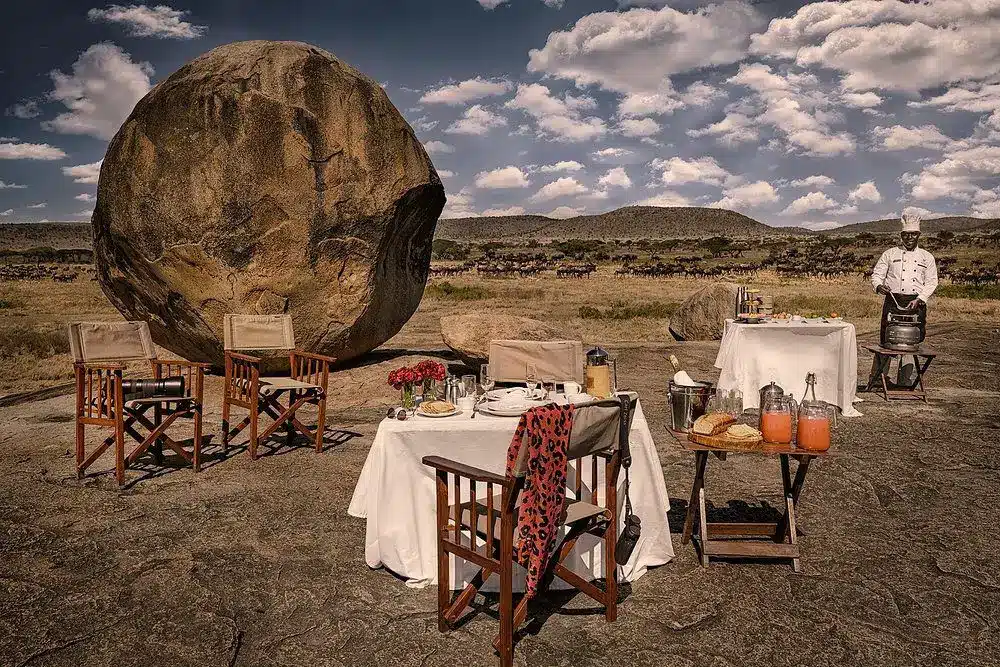 Take an early morning hot air balloon ride over the Serengeti for a breathtaking aerial view of the savannah and its wildlife, followed by a champagne breakfast in the bush.