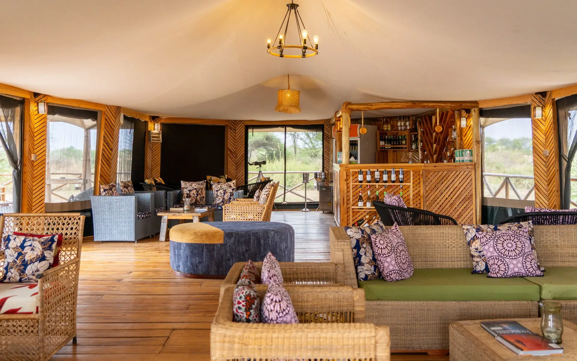 The camp features spacious and beautifully designed luxury tents, each equipped with king-size or twin beds, en-suite bathrooms with hot showers, flush toilets, solar-powered lighting, and private verandas that overlook the Serengeti landscape. The main lounge and dining areas are elegantly furnished, offering a relaxed atmosphere where guests can unwind with a book, enjoy a drink at the bar, or dine under the stars. The camp also offers Wi-Fi in communal areas, laundry services, and a cozy firepit for evening storytelling and sundowners.