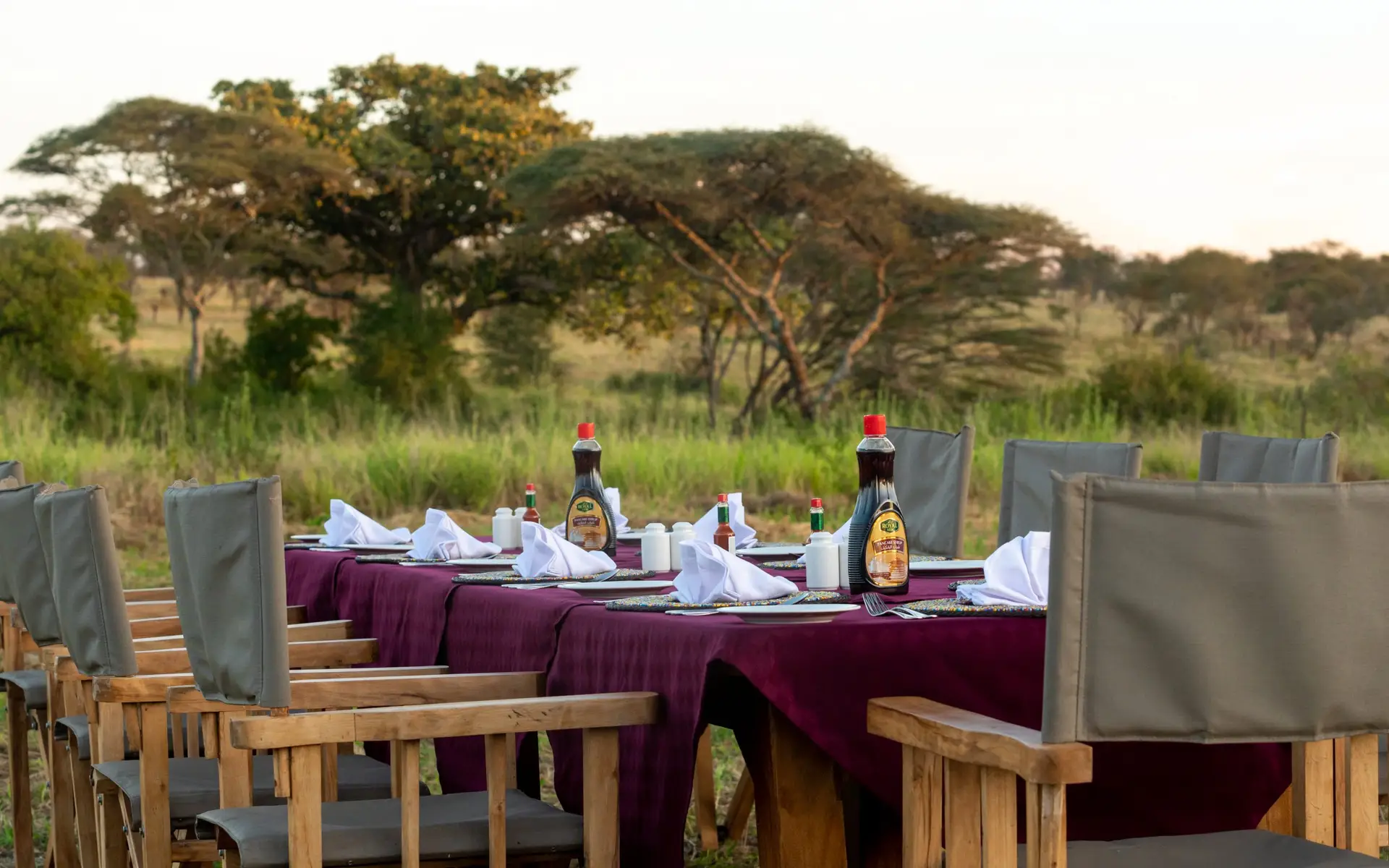 Nyota Luxury Camp enhances the safari experience with private bush breakfasts, picnic lunches, and romantic dinners under the stars, along with sundowners at scenic viewpoints overlooking the Serengeti plains.