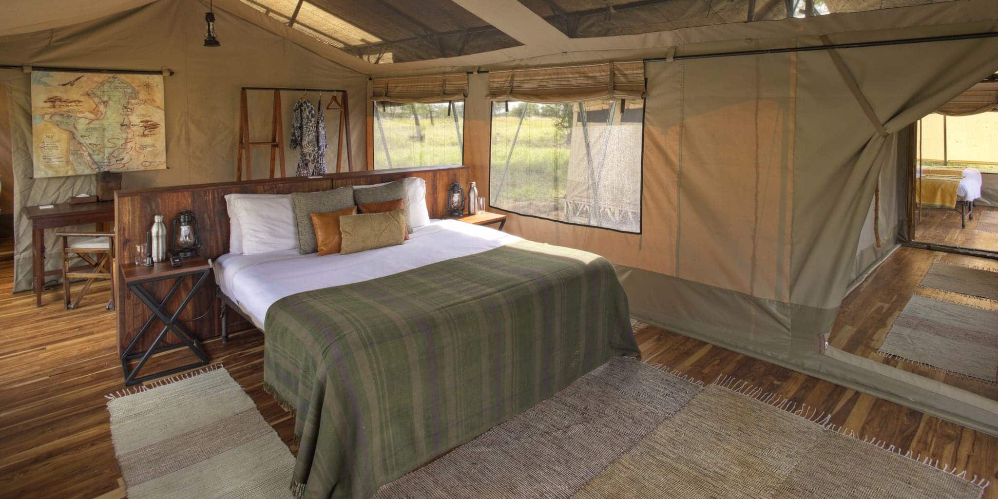 Olakira Migration Camp follows the migration throughout the year, offering the closest possible view of the action. The canvas tents are designed to blend into the bush without leaving a trace, though that doesn’t mean we scrimp on comforts.