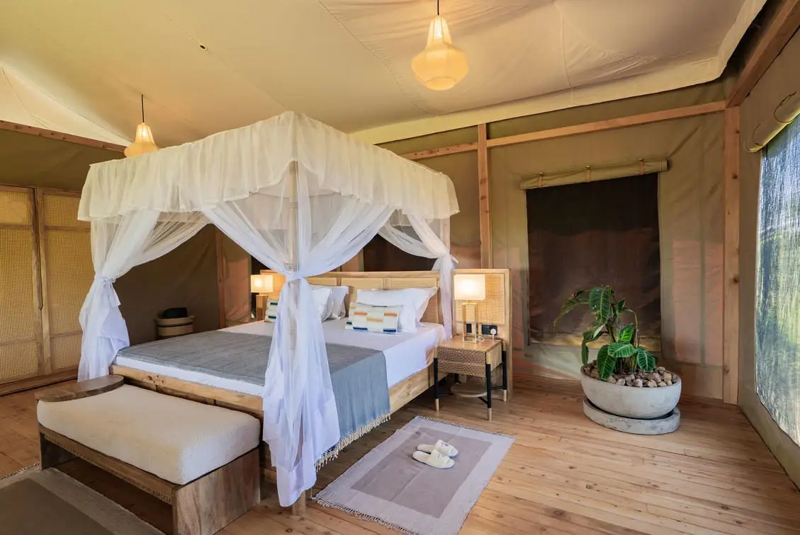 Olkupelia Mara Camp is an intimate luxury tented camp nestled along the Talek River in Kenya’s Masai Mara. Designed for travelers seeking a personalized, immersive safari, this boutique property offers a harmonious blend of wild beauty, cultural richness, and barefoot luxury. With just a handful of spacious tents, the camp promises exclusivity and quiet, perfect for couples, families, or small groups wanting a more private and soulful experience of the Mara.