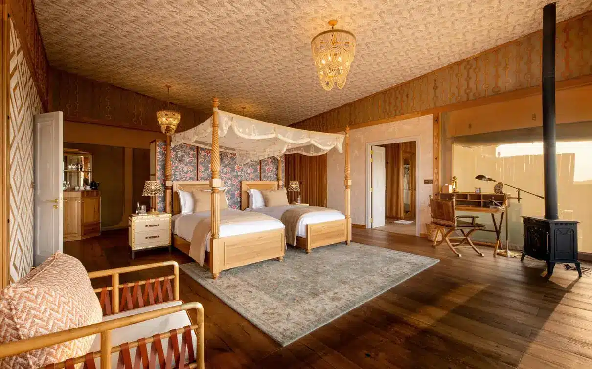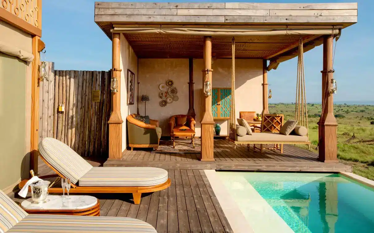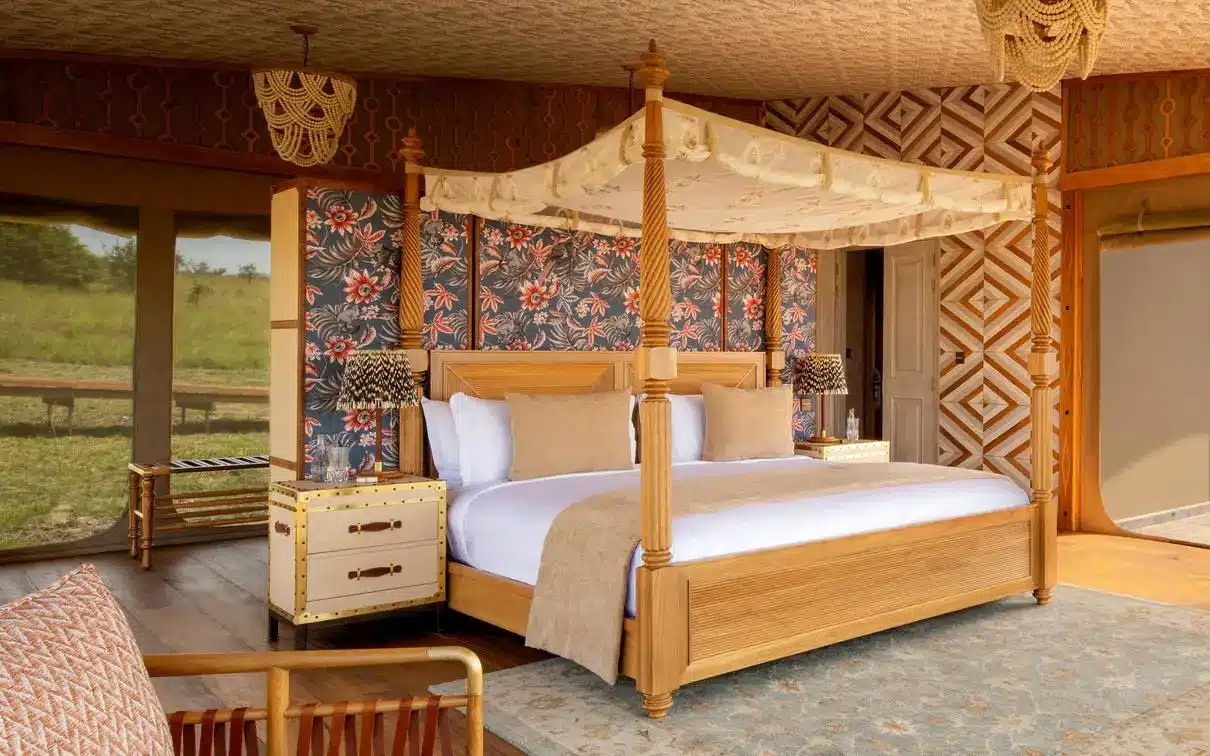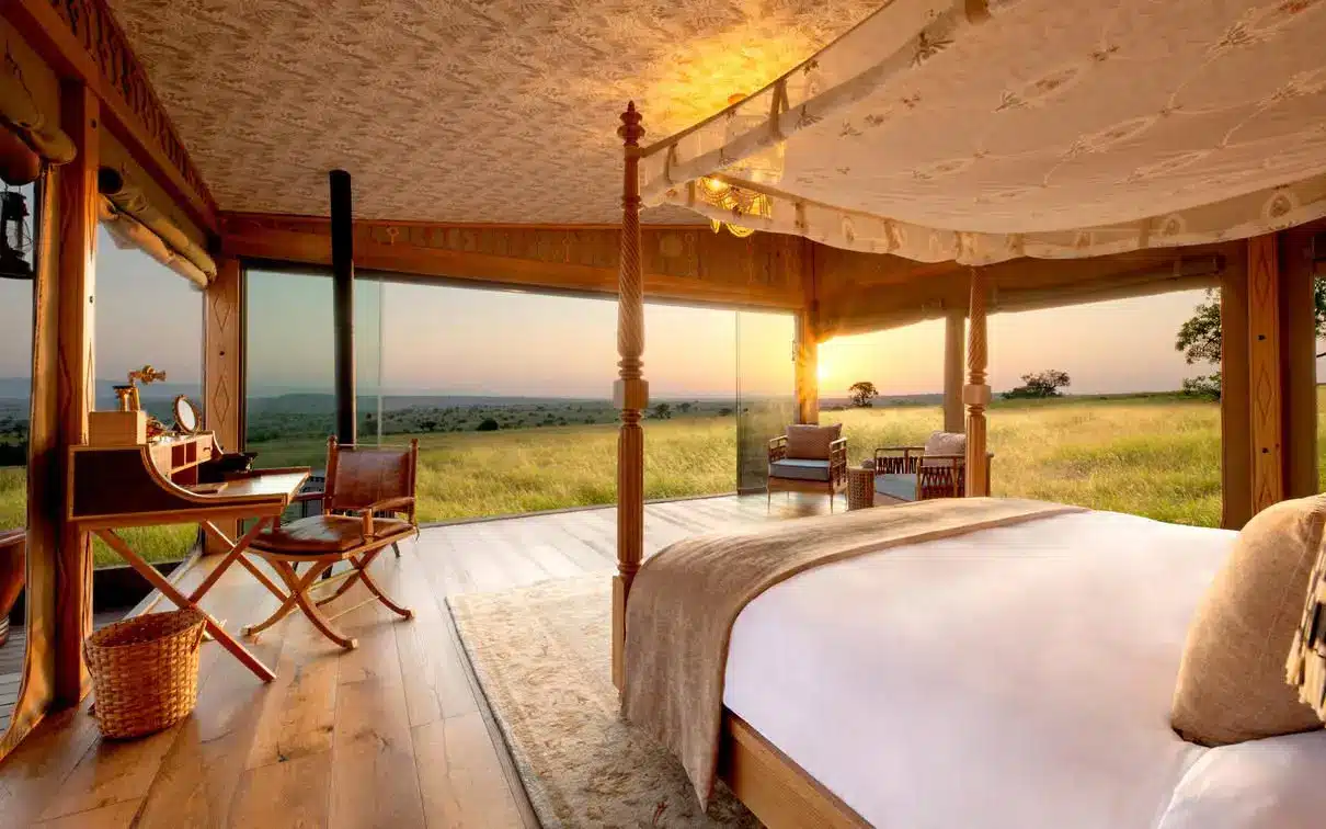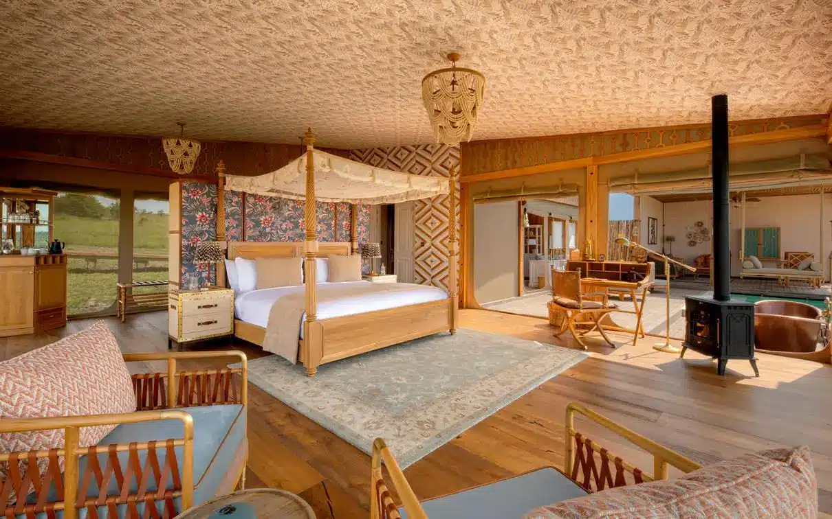 One Nature Mara River Camp offers exquisite, ultra-luxurious tented suites designed to provide both comfort and an authentic safari experience. Each spacious canvas suite is built on a raised wooden deck, featuring a king-size or twin beds with premium organic linens, an en-suite bathroom with both indoor and outdoor showers, a freestanding soaking tub, and a private deck with breathtaking views of the Mara River. Guests enjoy 24/7 butler service, ensuring personalized care, while the camp’s infinity pool, fine dining restaurant, luxurious lounge, well-stocked bar, wellness spa, and a library with a photography studio offer an exclusive and relaxing retreat in the heart of the Serengeti.