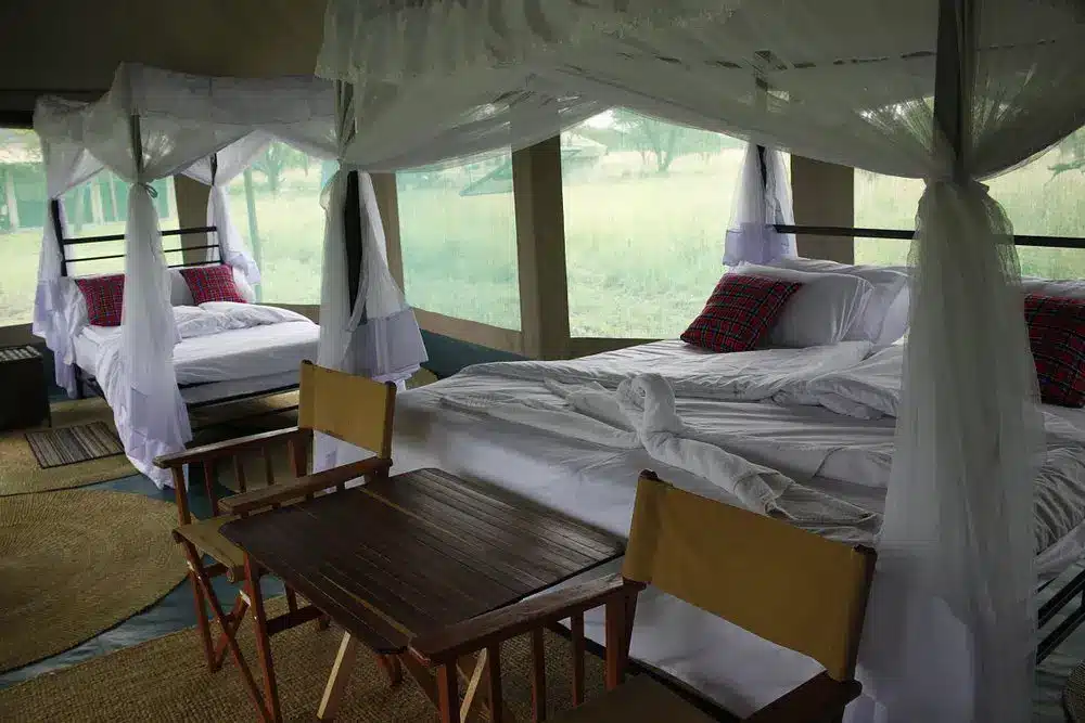 Osero Serengeti Tented Camp offers well-appointed, spacious canvas tents that provide a perfect blend of comfort and wilderness immersion. Each tent is equipped with comfortable beds, en-suite bathrooms with hot showers, flush toilets, and a private veranda where guests can relax while enjoying the surrounding scenery. The camp’s central lounge and dining area offer a cozy atmosphere with delicious meals prepared by skilled chefs, featuring both local and international cuisines. A campfire area provides the perfect spot to unwind after a day of adventure, with storytelling and stargazing enhancing the safari experience.