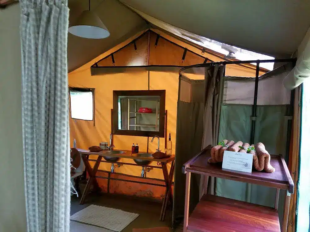 The main lounge and dining area provide a cozy setting for guests to enjoy delicious, locally sourced meals and relax after a day of adventure. Rekero Camp is solar powered, promoting sustainable tourism while ensuring modern conveniences.