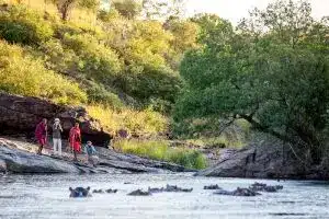 Access to Richard’s River Camp is possible both by road and by air. From Nairobi by air, guests can take a scheduled or chartered flight from Wilson Airport to Mara North Airstrip, which takes about 1 hour. From the airstrip, it’s a 20 to 30 minute drive to the camp, offering scenic views and the chance to spot game before even arriving.