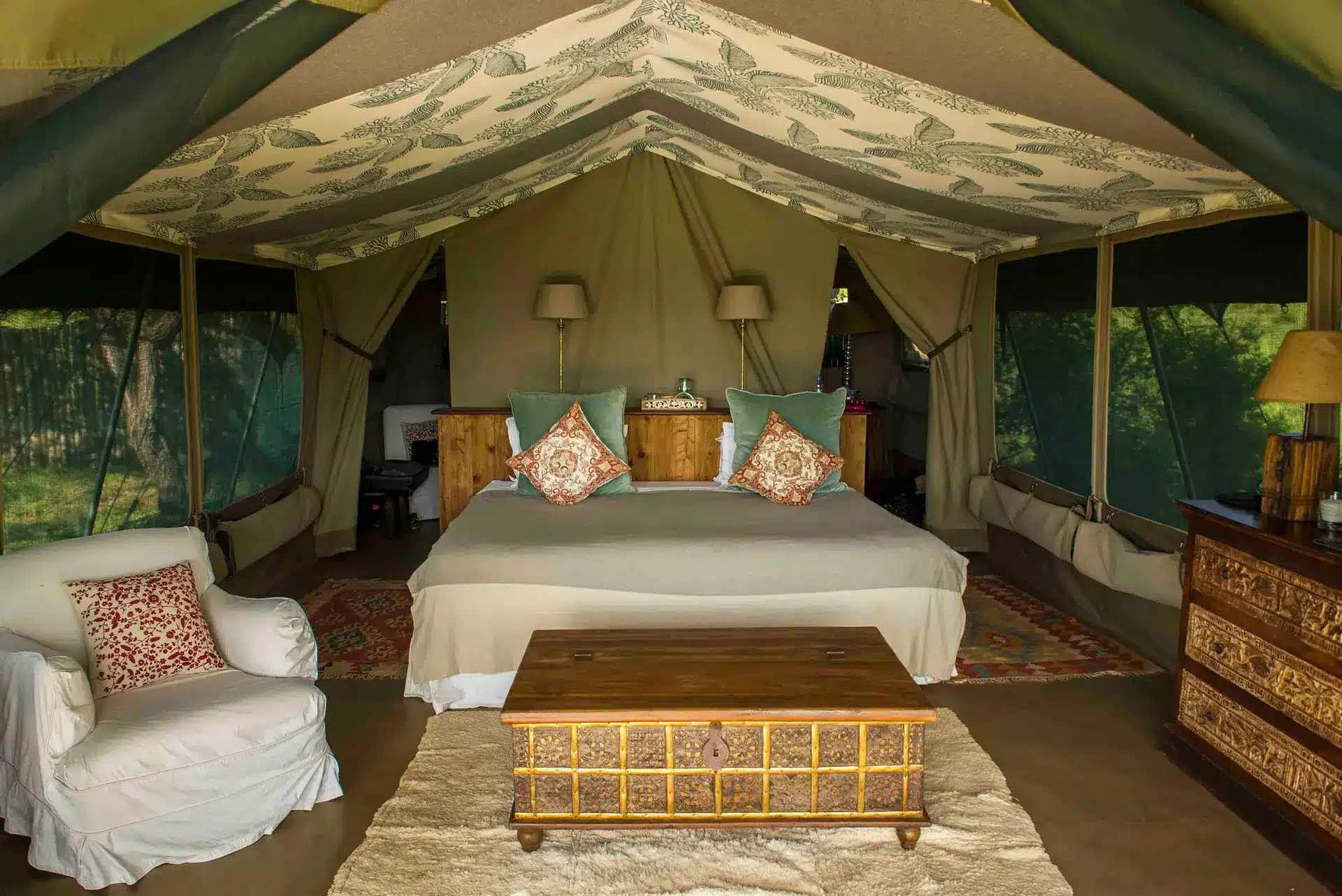 Richard’s River Camp is an intimate luxury safari camp nestled in the Mara North Conservancy of Kenya’s greater Masai Mara ecosystem. Set along the private banks of the Ntiakatek River, the camp blends seamlessly into the wild, offering a quiet and exclusive setting for travelers seeking both comfort and raw nature. With only a handful of tents, the camp provides a personalized, high end safari experience, far removed from crowded tourist routes. Its location near a permanent spring ensures year round wildlife viewing, including regular visits by elephants, lions, and leopards, right from the comfort of camp.