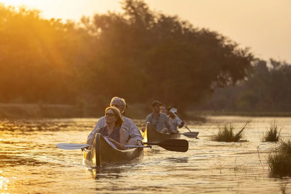 One of the signature activities of the Lower Zambezi, canoeing safaris let guests paddle along quiet river channels, observing elephants, hippos, crocodiles, and prolific birdlife from the water.