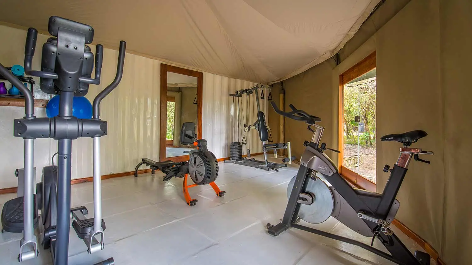 The main mess tent offers a fine dining experience, serving gourmet cuisine with fresh, locally sourced ingredients.
