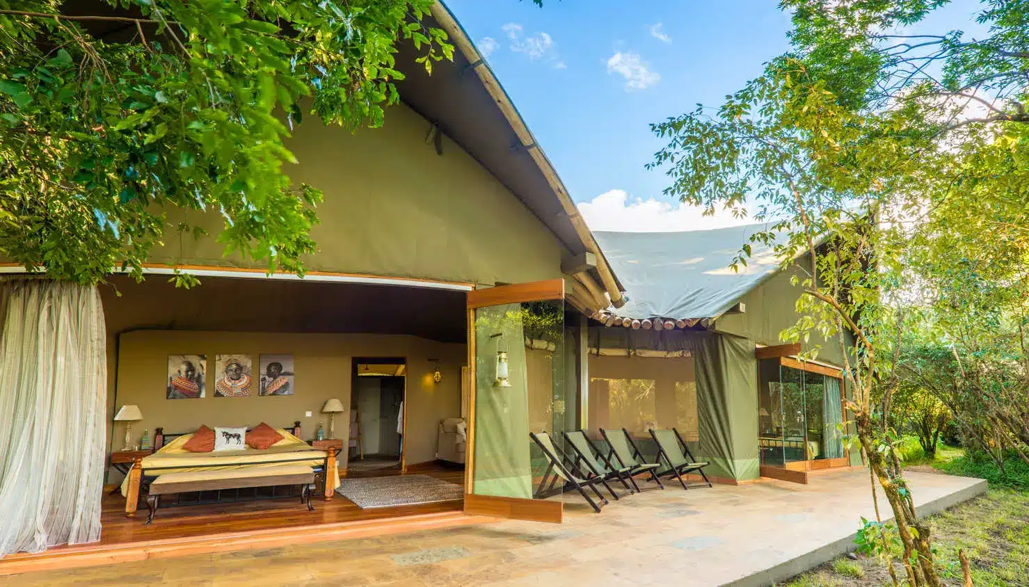 Sala’s Camp is a luxurious tented safari camp located in the southern part of the Maasai Mara National Reserve, Kenya. Nestled along the banks of the Sand River, the camp offers an exclusive and intimate setting, perfect for guests seeking authentic African wilderness experiences while enjoying modern comforts. As one of the first camps in the Mara to witness the Great Migration, Sala’s Camp provides a front-row seat to one of nature’s most spectacular events, where thousands of wildebeest and zebras cross into Kenya from the Serengeti.