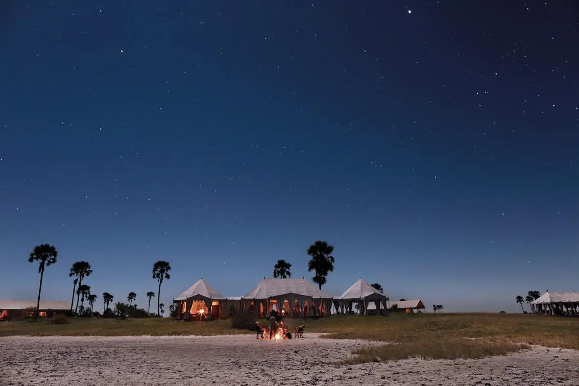 San Camp is an intimate and ultra stylish tented camp set on the edge of Botswana’s vast Makgadikgadi Salt Pans, offering a refined yet deeply immersive desert safari experience. Known for its distinctive white canvas tents and classic 1940s safari design, the camp blends minimalist elegance with the stark beauty of the surrounding wilderness. San Camp is celebrated for its tranquillity, panoramic views that stretch to the horizon, and a focus on both wildlife encounters and cultural connections with the San Bushmen. It is the kind of place where the stillness is just as much a highlight as the game viewing, making it ideal for travelers who appreciate a slower, more contemplative safari in a remote and otherworldly setting.