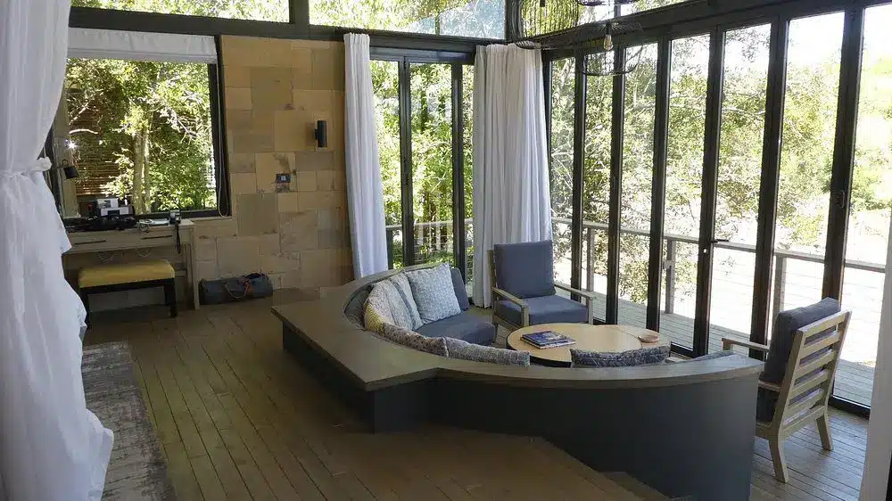 Sanctuary Olonana Camp is committed to eco-friendly operations, with solar power, a water recycling system, and sustainable building materials used throughout the property.