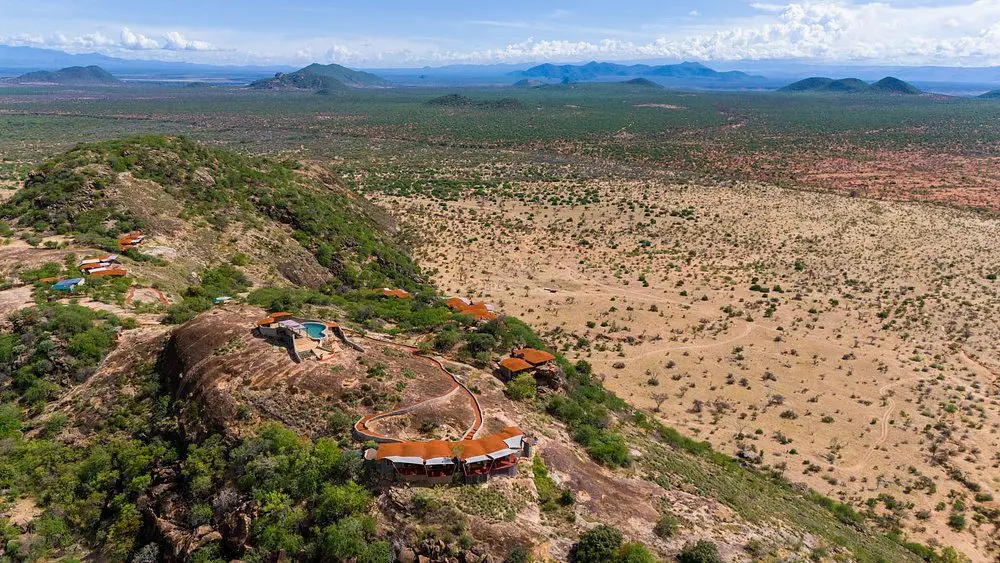Saruni Camp Samburu features six luxury villas built with a blend of traditional and contemporary design, offering spectacular views of the vast plains below.