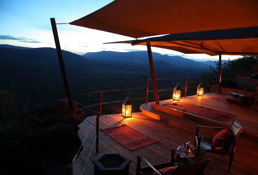 Saruni Camp Samburu offers an infinity pool overlooking the landscape, a wellness spa, an open-air restaurant, and a cozy lounge area. Meals are a fusion of local and international cuisine, often served under the stars.