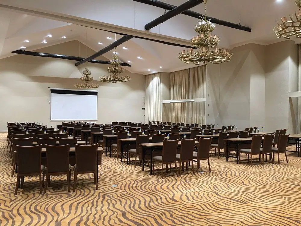 The lodge is surrounded by beautiful gardens and boasts facilities such as a swimming pool, a fully equipped gym, a wellness spa, and conference facilities.
