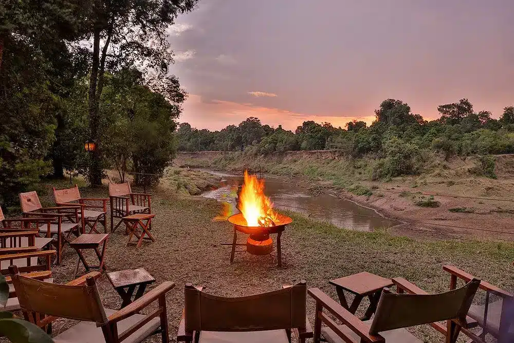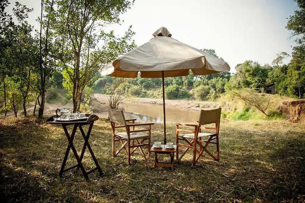 Each tent is beautifully furnished with campaign-style furniture, featuring king or twin beds, a writing desk, private verandas overlooking the Mara River, and en-suite bathrooms with hot bucket showers.