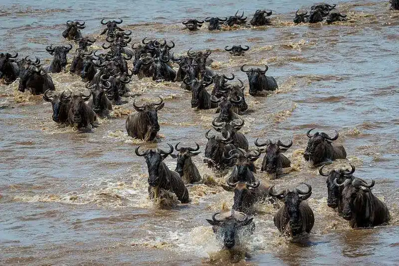 Experience the dramatic river crossings as thousands of wildebeest and zebras navigate the treacherous Mara River.