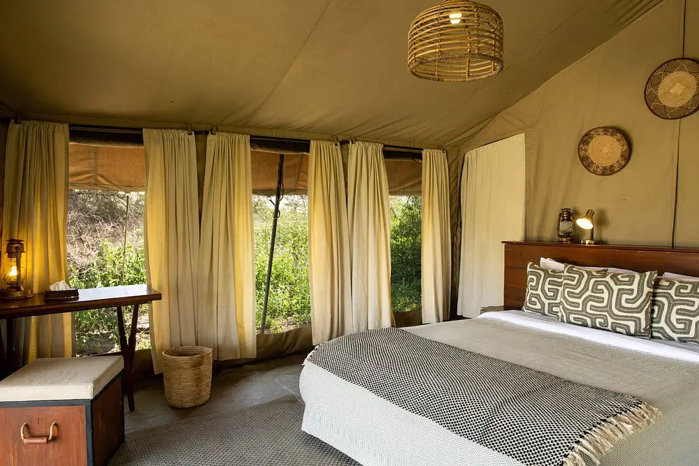 The camp provides a central lounge and dining area where guests can enjoy freshly prepared gourmet meals. A cozy campfire setup allows for storytelling and relaxation under the African night sky. With attentive staff and personalized service, Serengeti Sojourn Camp ensures a seamless and luxurious stay in the heart of the wilderness.