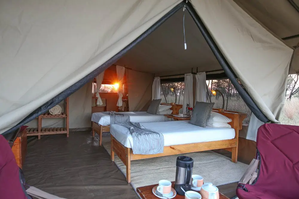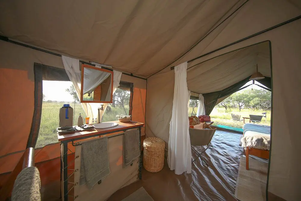 The camp features spacious and elegantly furnished luxury tents with en-suite bathrooms, hot showers, and flush toilets. Each tent has a private deck with stunning views of the surrounding savannah, allowing guests to enjoy the sights and sounds of the African wilderness from the comfort of their accommodation.