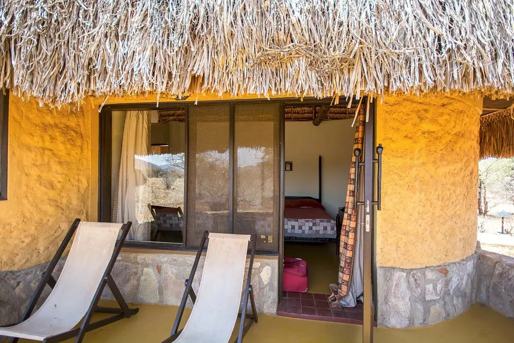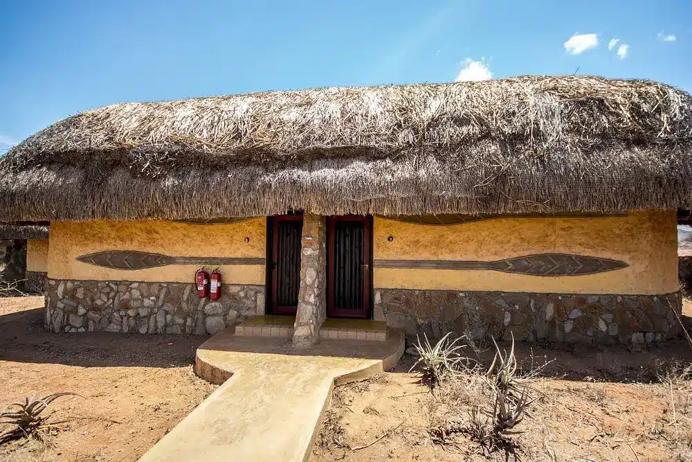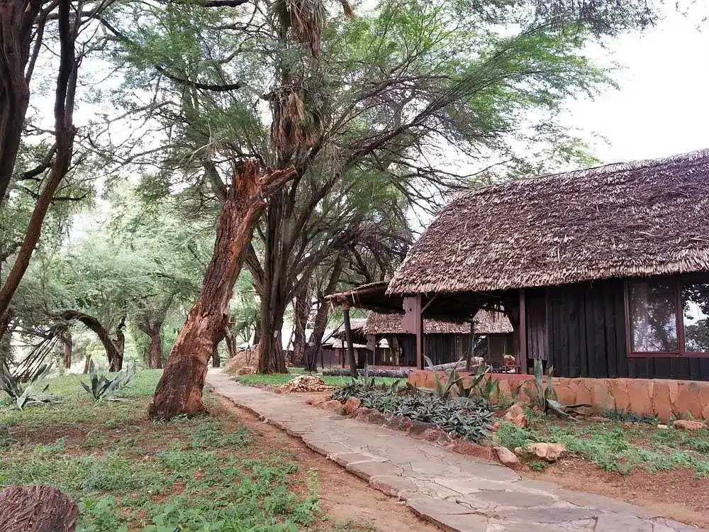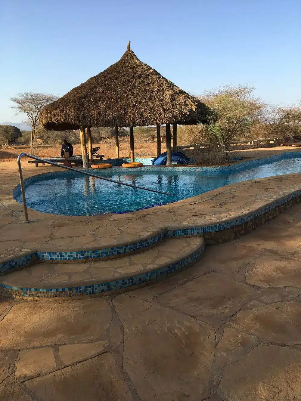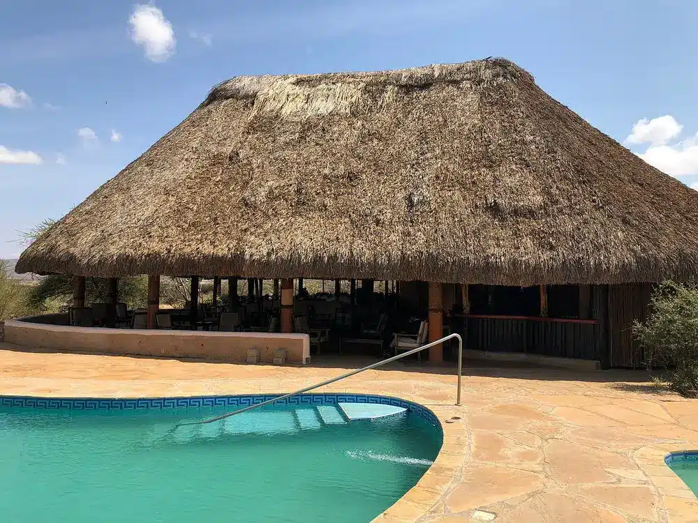 The lodge is designed with traditional Samburu architectural influences and blends seamlessly with its surroundings.