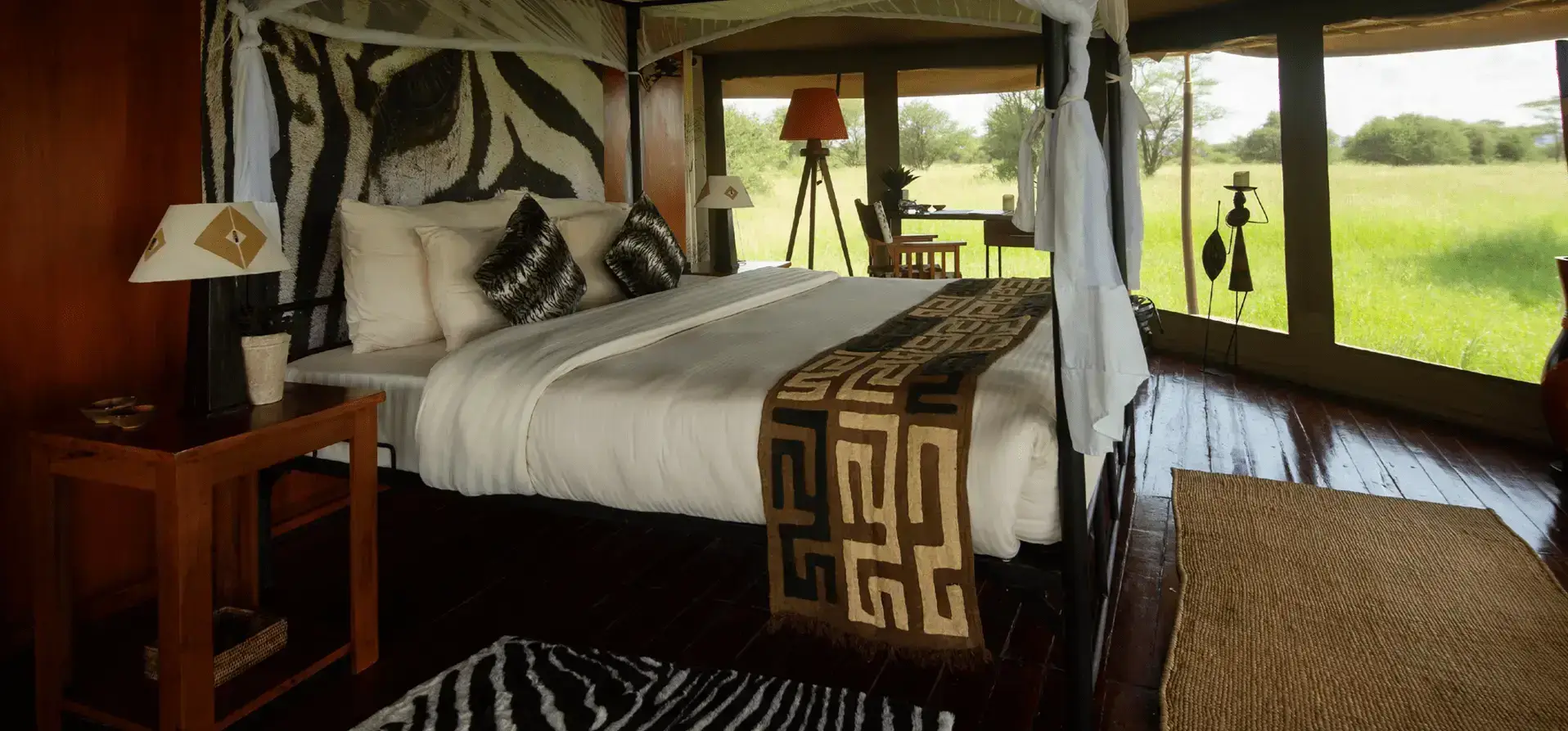 Sound of Silence offers spacious and elegantly designed luxury tents, each featuring en-suite bathrooms, hot showers, and private verandas with stunning views of the Serengeti.
