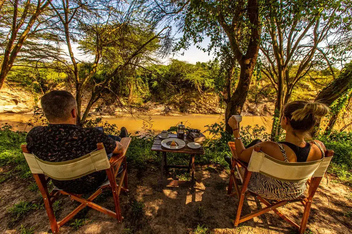Guests can enjoy delicious bush dining, including breakfasts by the river, sundowners in the savannah, and candlelit dinners under the stars. Other amenities include Wi-Fi in the main areas, a swimming pool, and a gift shop selling Maasai crafts.