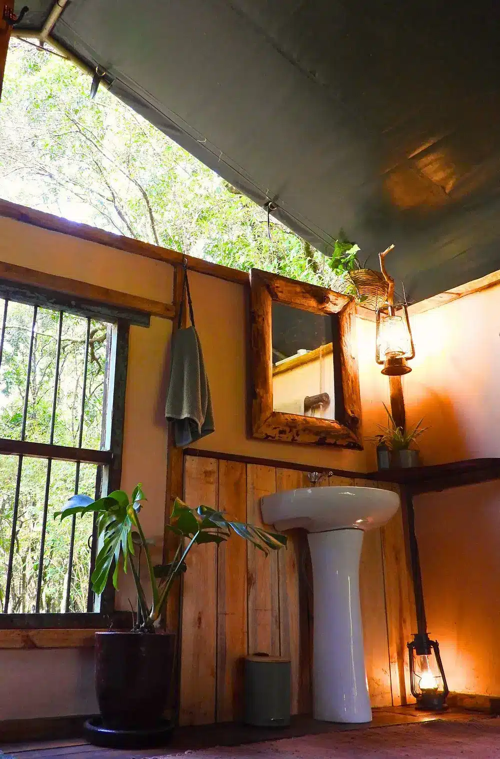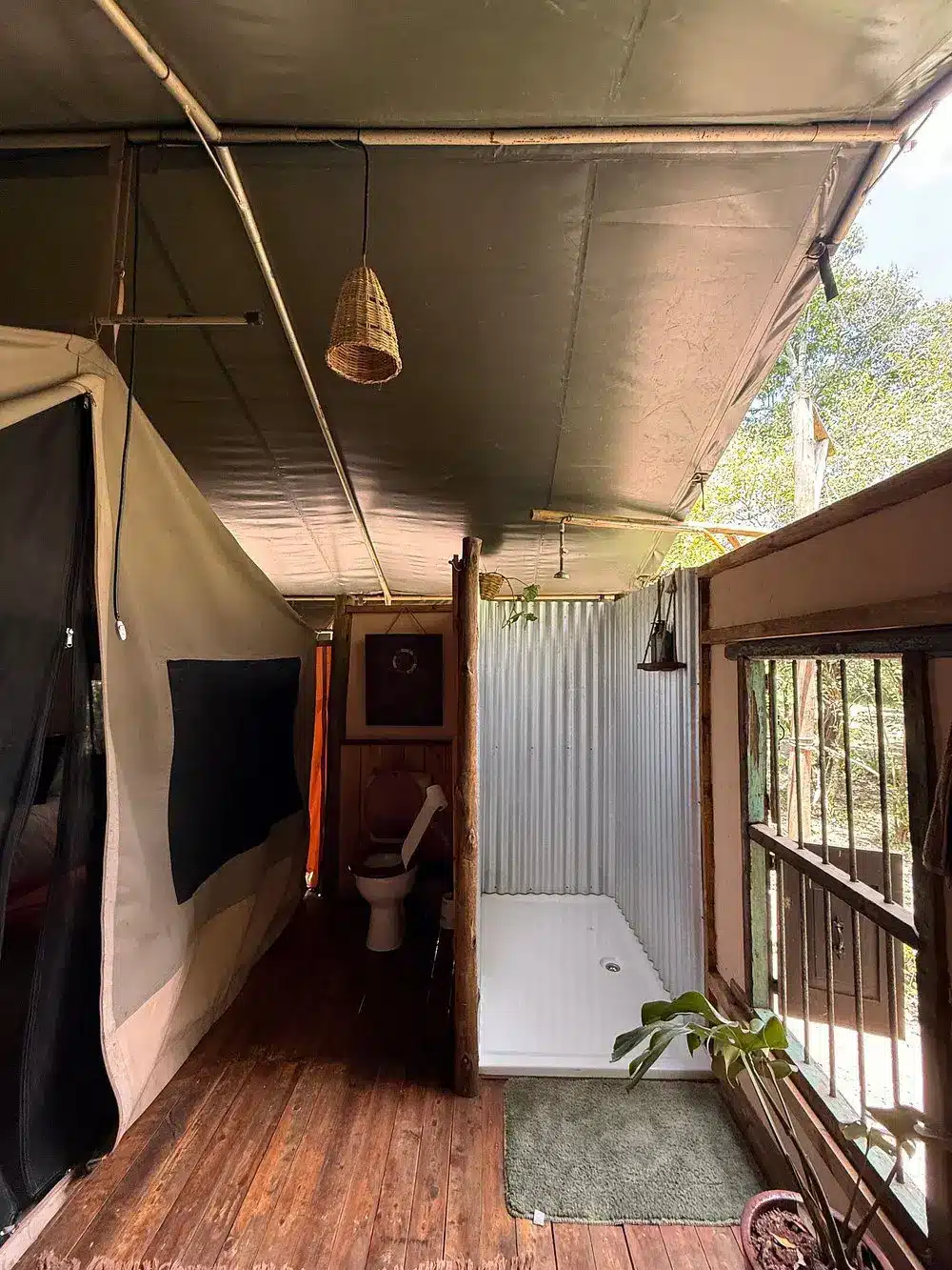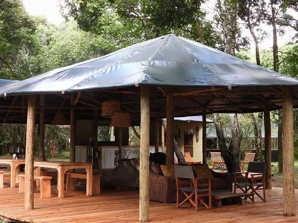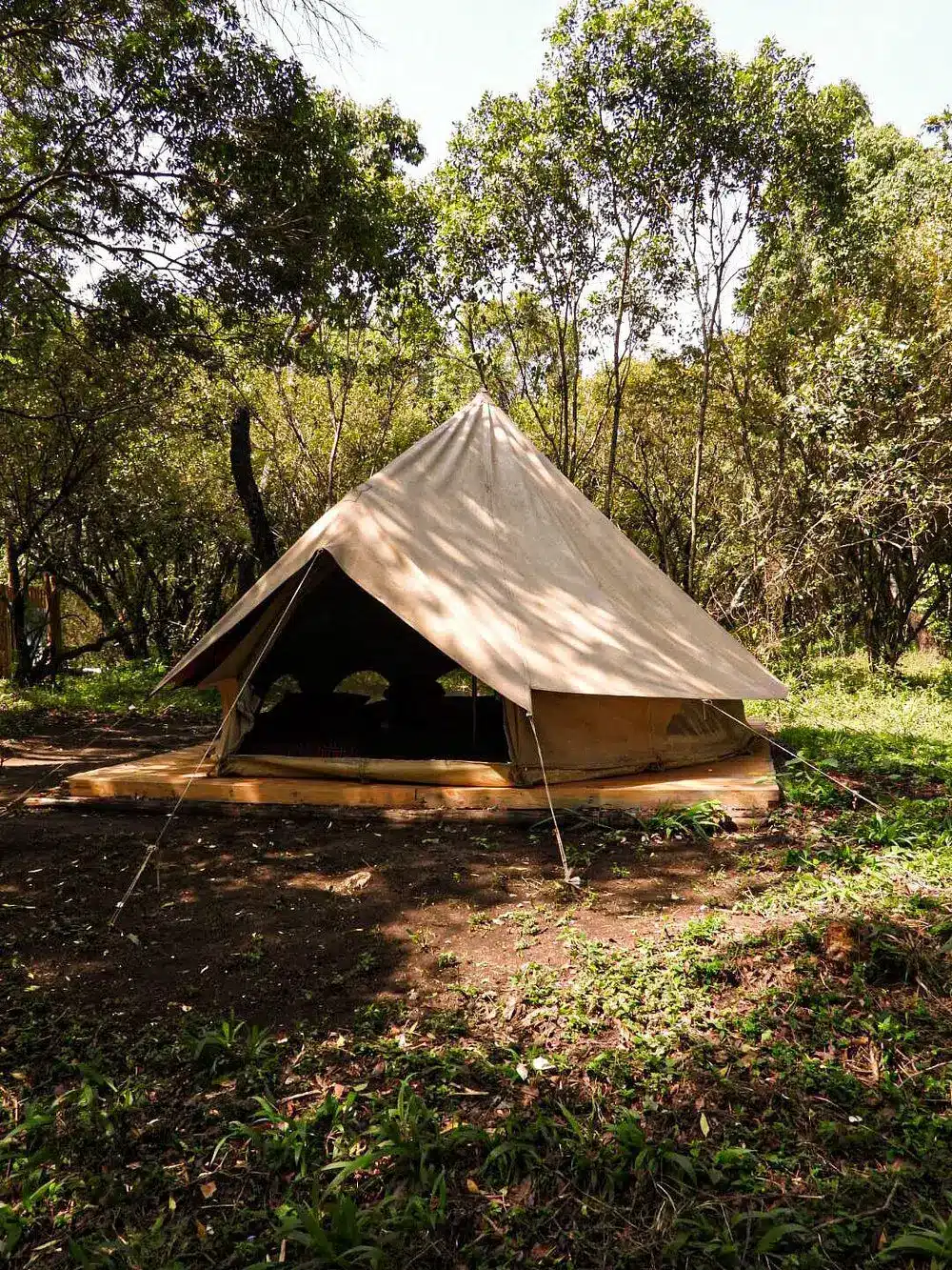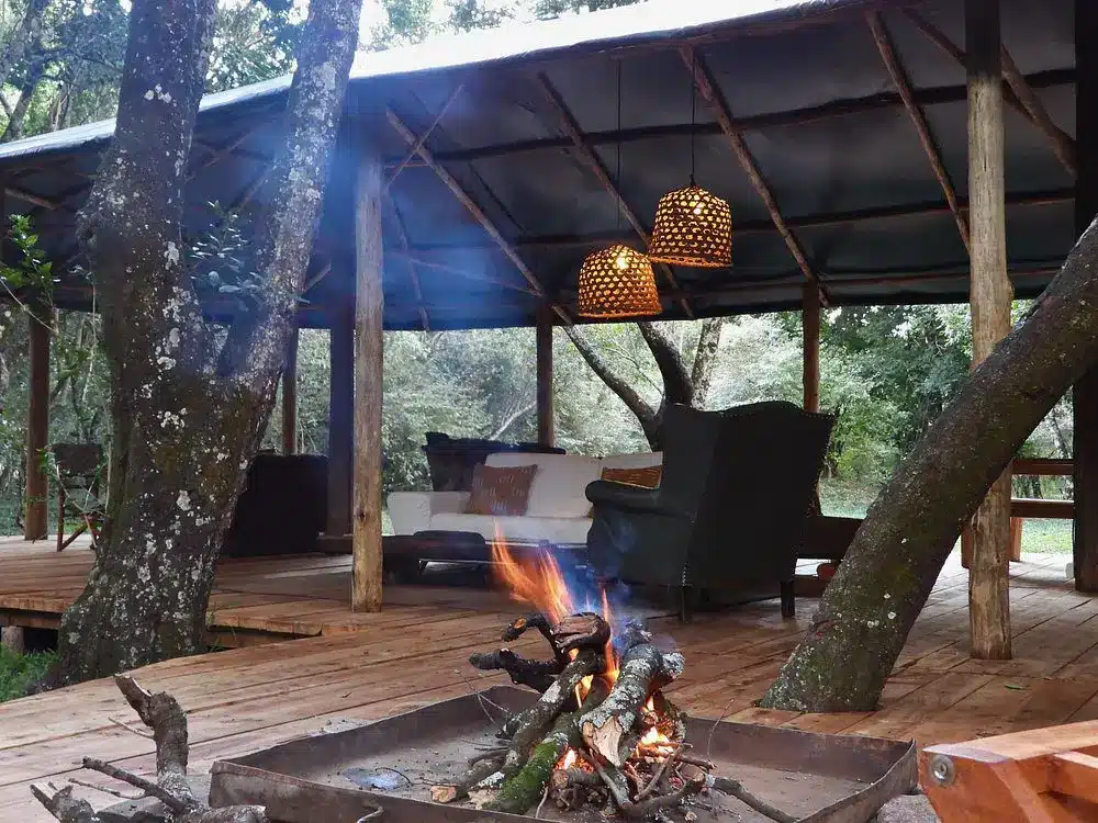 Fully furnished, self-catered tents that provide a comfortable camping experience. Each tent accommodates up to two persons and includes amenities such as en-suite bathrooms with hot showers, electricity charging points, and private verandas overlooking the forest.