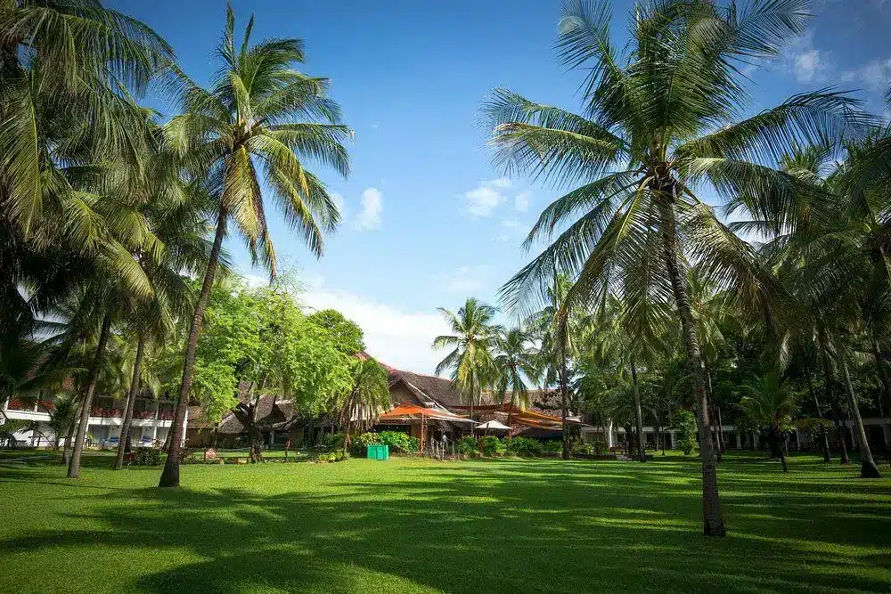 For guests flying in, Moi International Airport (MBA) is about 18 km away, requiring a 30 to 40 minute drive to reach the resort. Direct flights from Nairobi to Mombasa take approximately one hour, with several airlines operating daily flights. Travelers coming from Nairobi by road will take approximately 8 to 9 hours along the Mombasa-Nairobi highway. From Mombasa’s city center, a short 20 minute taxi ride brings guests directly to the resort.