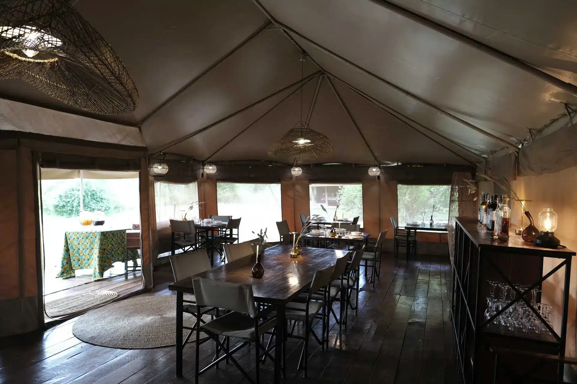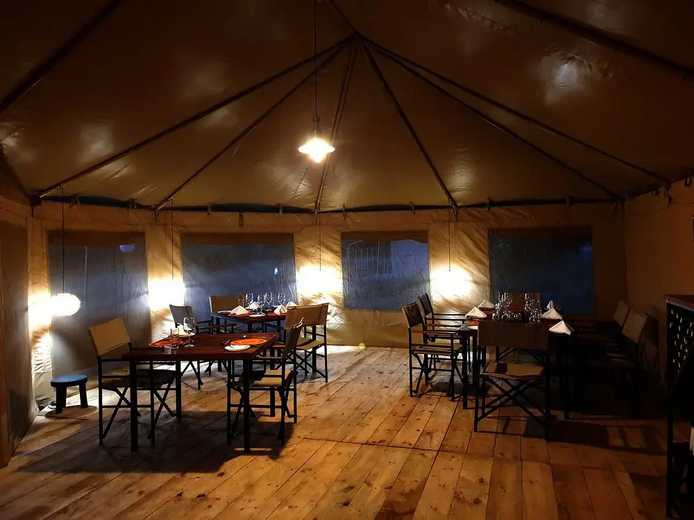 Whisper Tented Lodge features a central lounge and dining area, where guests can enjoy gourmet meals crafted from fresh, locally sourced ingredients.