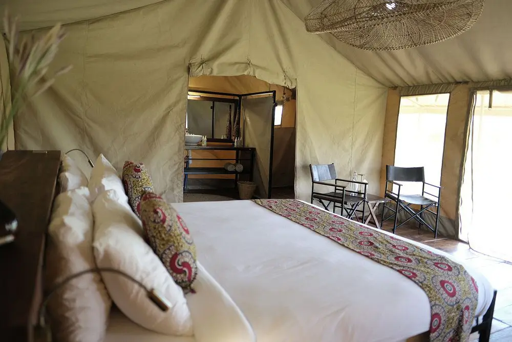 Whisper Tented Lodge offers spacious and elegantly designed tented suites, each equipped with en-suite bathrooms, comfortable bedding, and private verandas overlooking the surrounding wilderness.