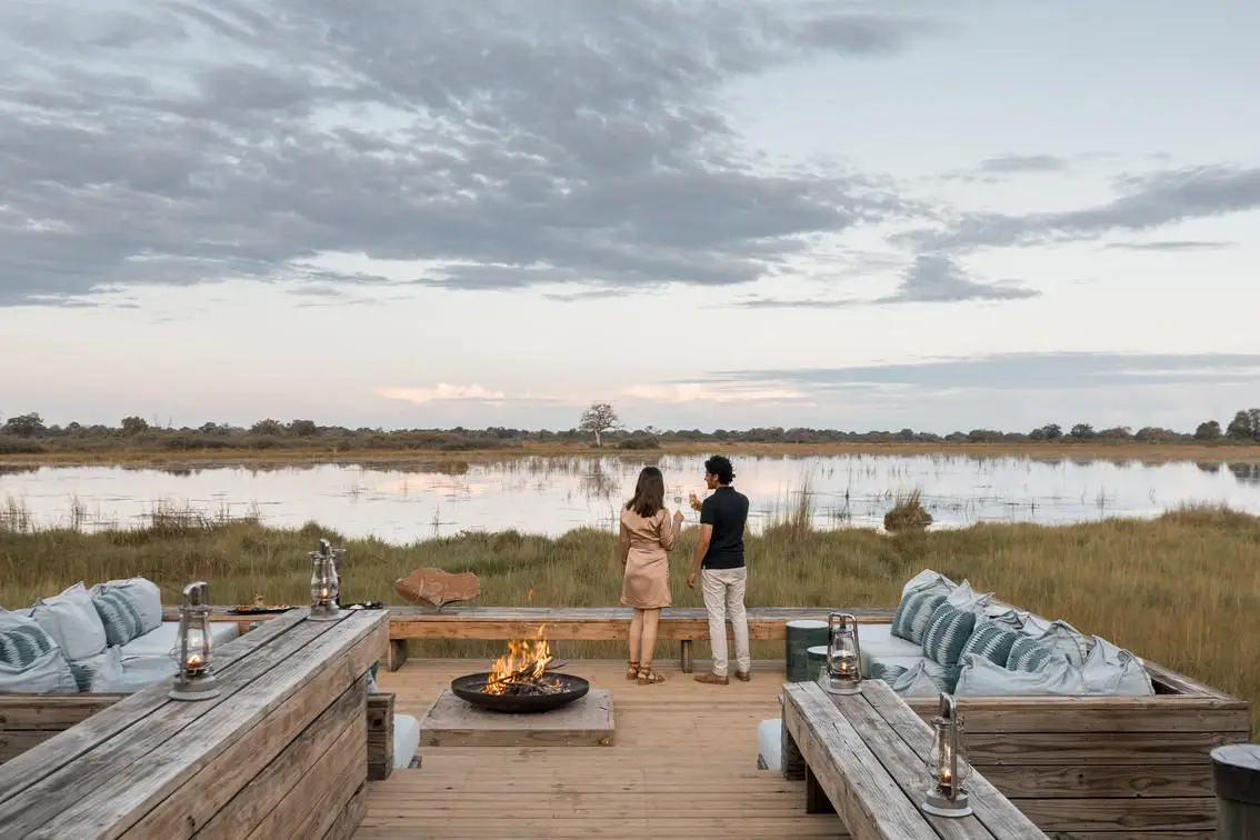 Guests can opt for a helicopter flight over the Okavango Delta for an unforgettable aerial perspective of the waterways and wildlife.