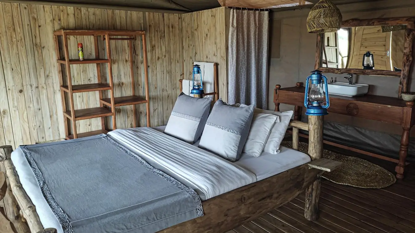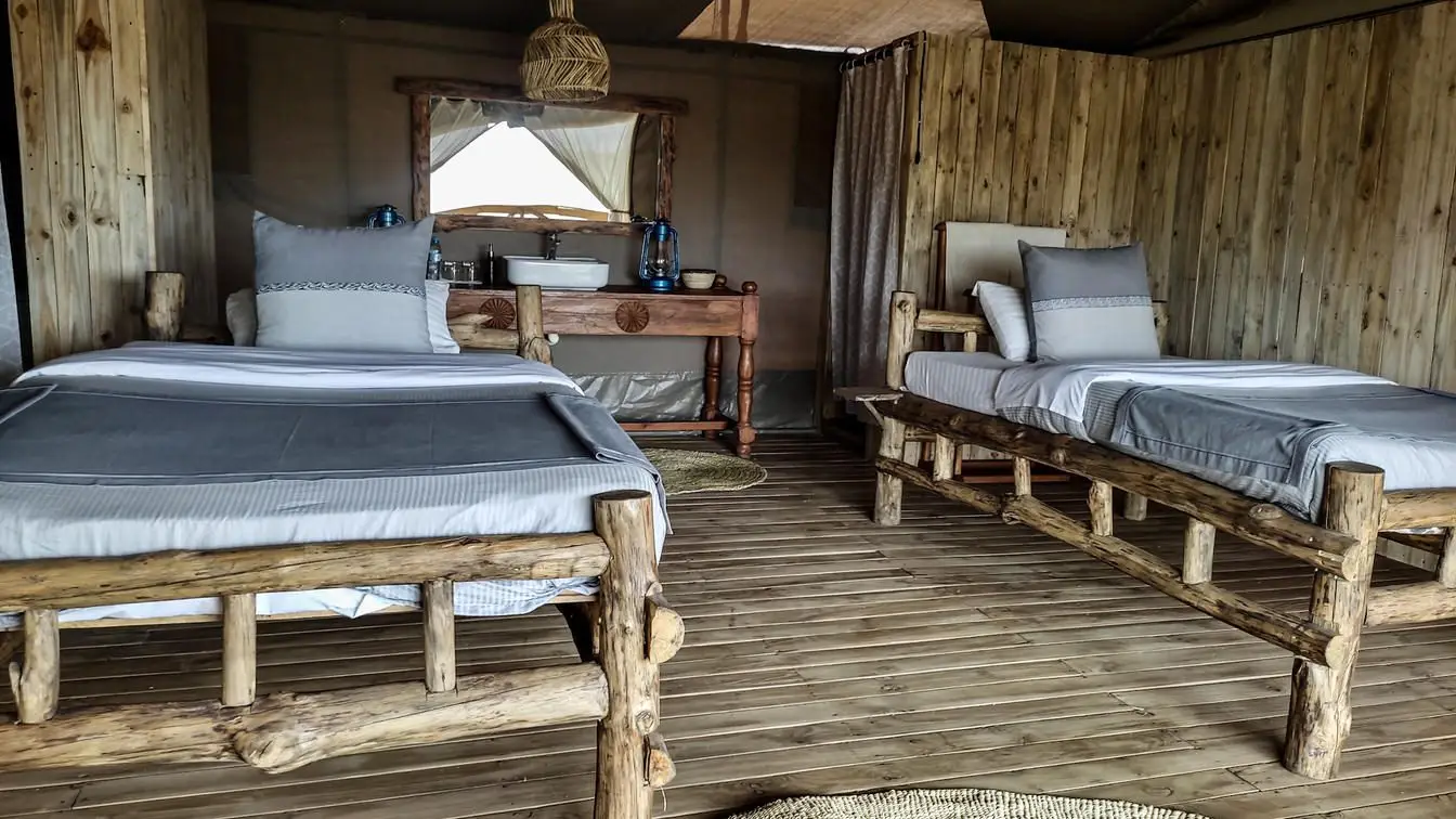 Zawadi Serengeti Camp offers luxurious tented accommodations, each featuring en-suite bathrooms, hot showers, plush beds, and private verandas overlooking the Serengeti plains. The camp is designed with an eco-conscious approach, using solar energy to minimize its environmental impact.